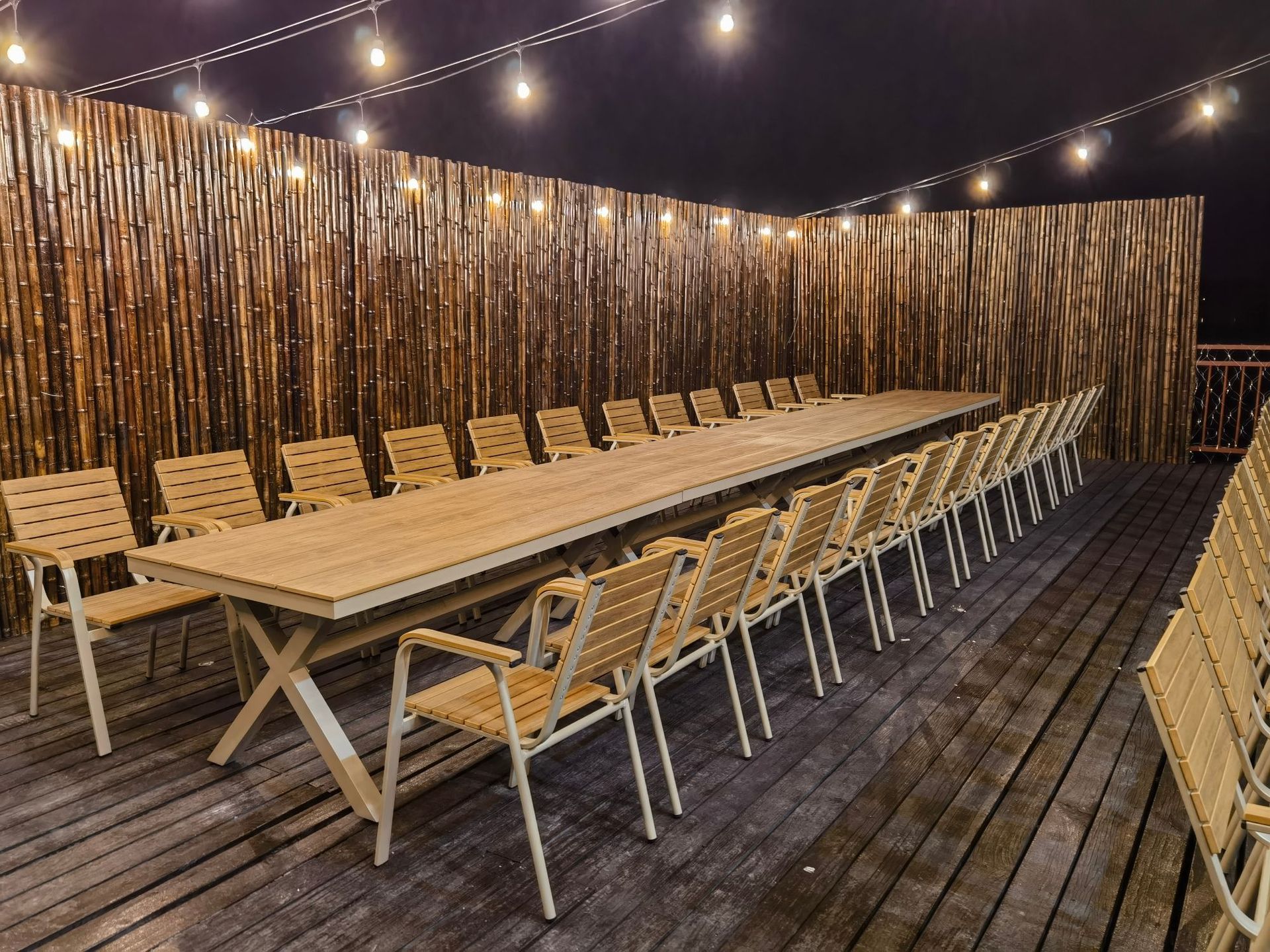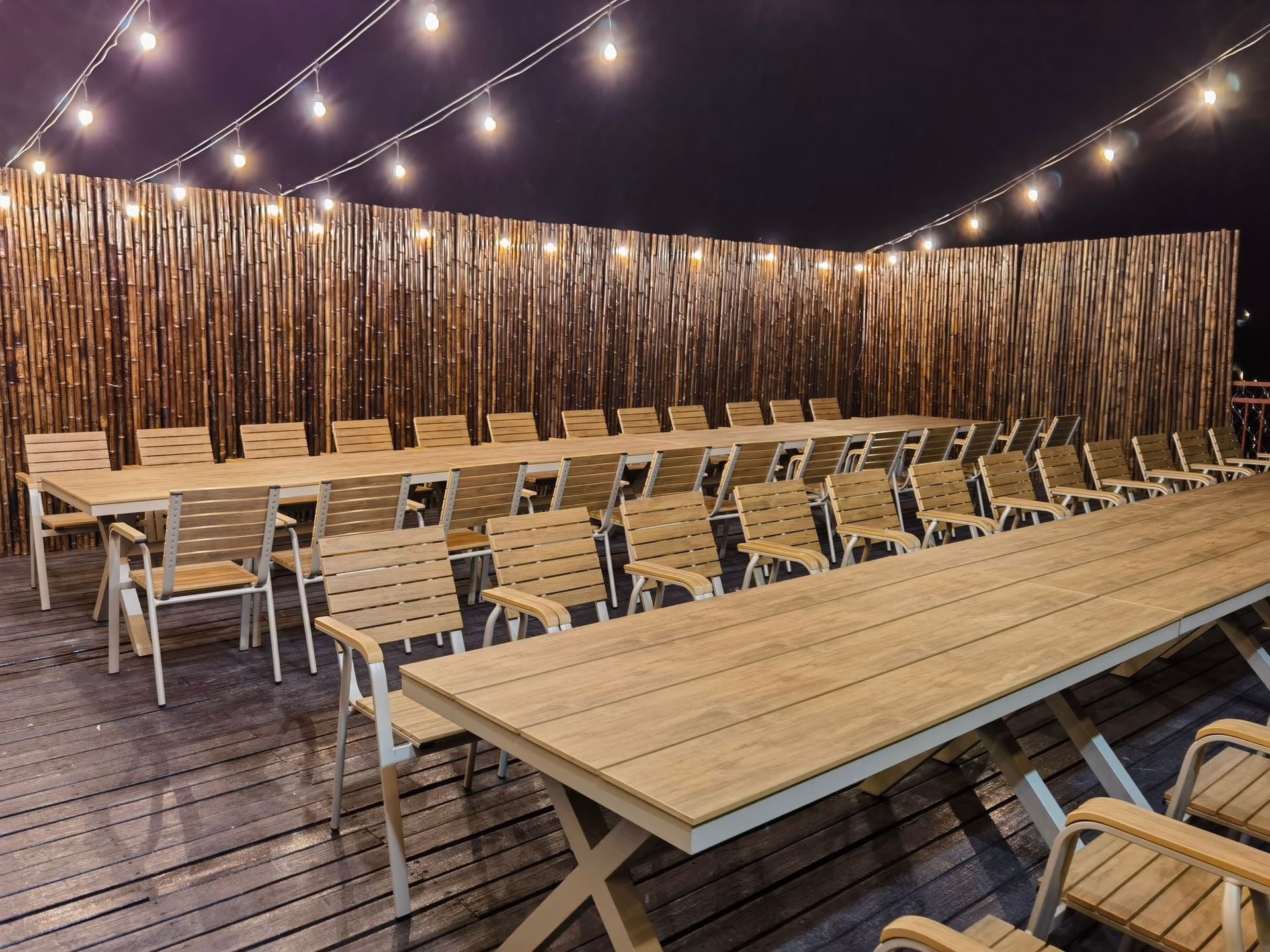 Bàn ghế ngoài trời sân xích đu ban công gỗ nhựa giải trí bàn ghế cafe sân vườn ngoài trời bàn ăn