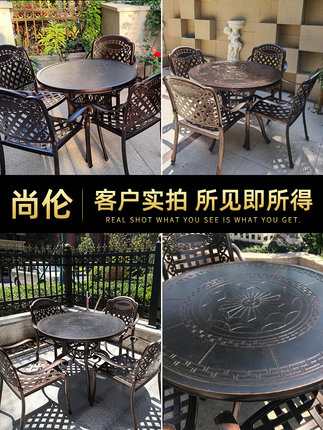 Bàn ghế ngoài trời Shanglun nhôm đúc kết hợp sân vườn ban công ngoài trời chống thấm chống nắng sắt rèn bàn ghế thư giãn ngoài trời
