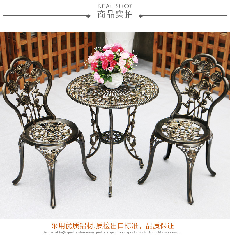 Bàn ghế ngoài trời Zifengling bộ ba tấm ngoài trời phong cách châu âu ban công sắt mỹ nghệ sân vườn bàn ghế nhôm đúc kết hợp bàn ghế