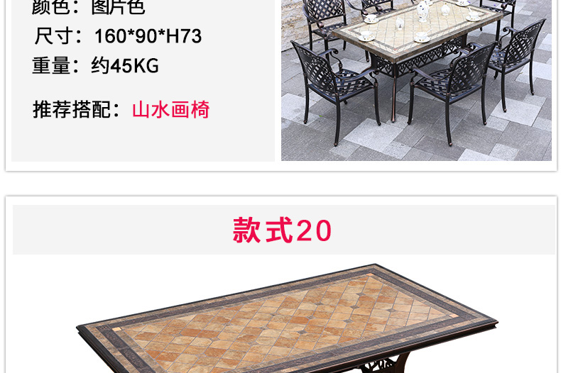 Sản phẩm nổi bật với các đặc điểm: Ngói ngoài trời nhôm đúc sân vườn ngoài trời sắt rèn sân thượng ban công thư giãn bàn ghế ăn bàn dài bàn ghế ngoài trời