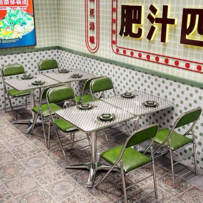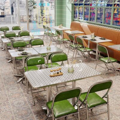 Bàn ghế nhà hàng trà phong cách Hồng Kông ghế thẻ kết hợp ghế sofa phong cách công nghiệp cửa hàng thịt nướng bàn ghế gấp cổ điển thương mại