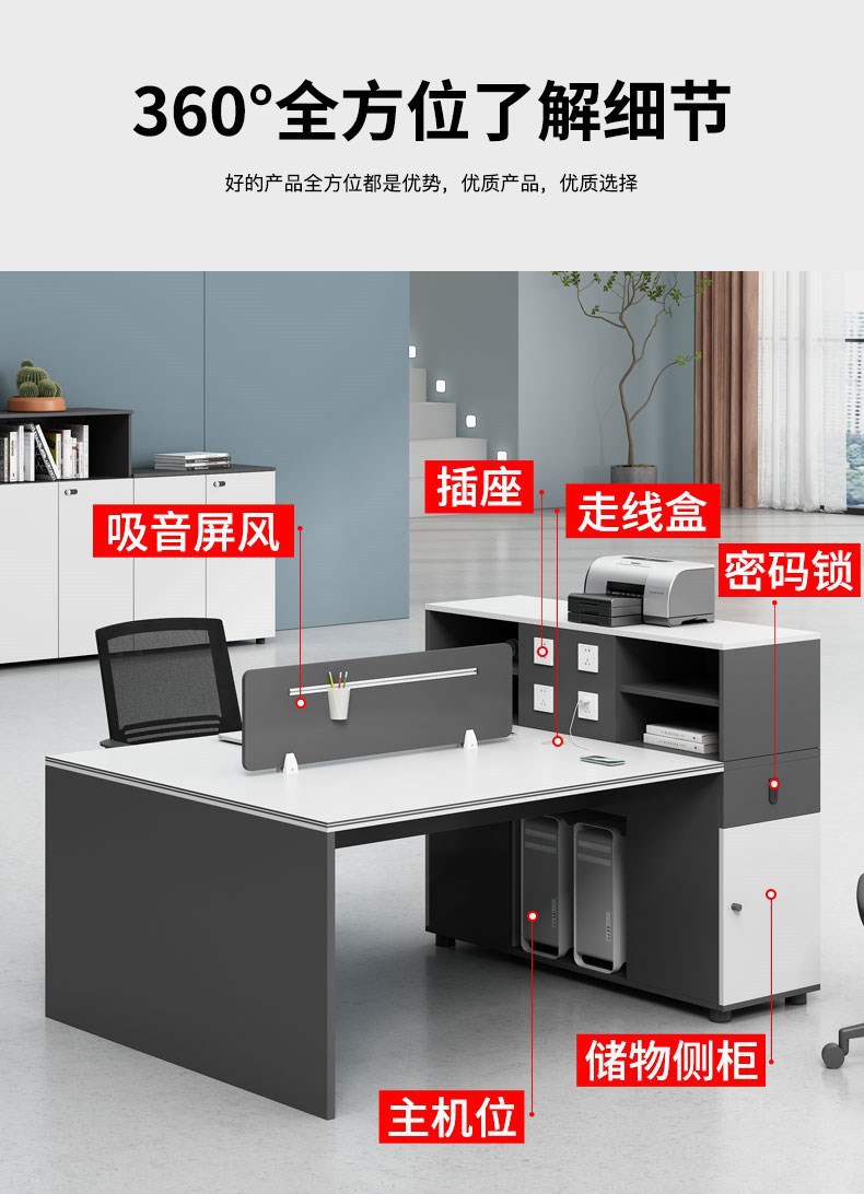 Bàn ghế nhân viên hiện đại đơn giản kết hợp 4 cặp 6 người nhân viên văn phòng tài chính bàn máy tính chỗ ngồi khe cắm