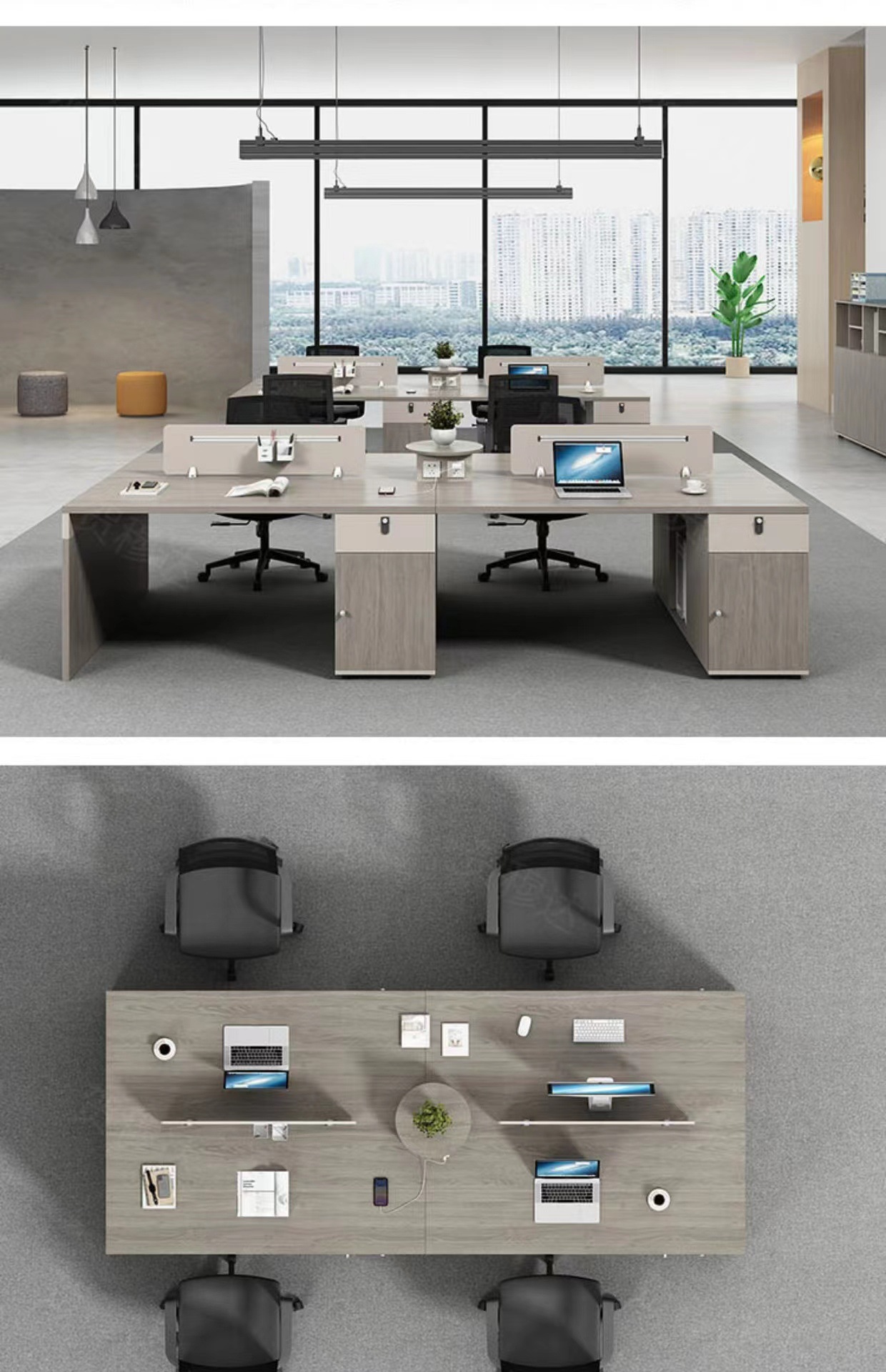 Bàn ghế nhân viên hiện đại đơn giản kết hợp 4 cặp 6 người nhân viên văn phòng tài chính bàn máy tính ghế trạm