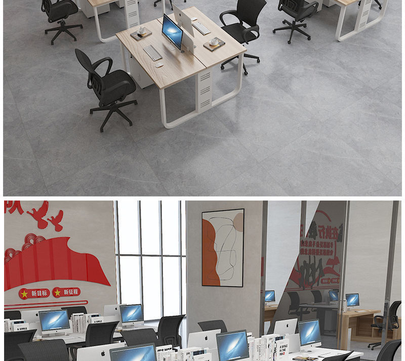 Bàn ghế nhân viên kết hợp 2/4/6 người văn phòng bàn vi tính màn hình Phòng làm việc bàn nhân viên Phòng