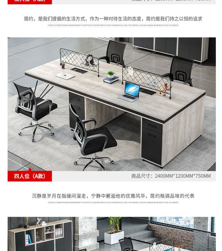 Bàn ghế nhân viên văn phòng kết hợp bốn người sáu người màn hình Phòng làm việc bàn máy tính nhân viên hiện đại đơn giản
