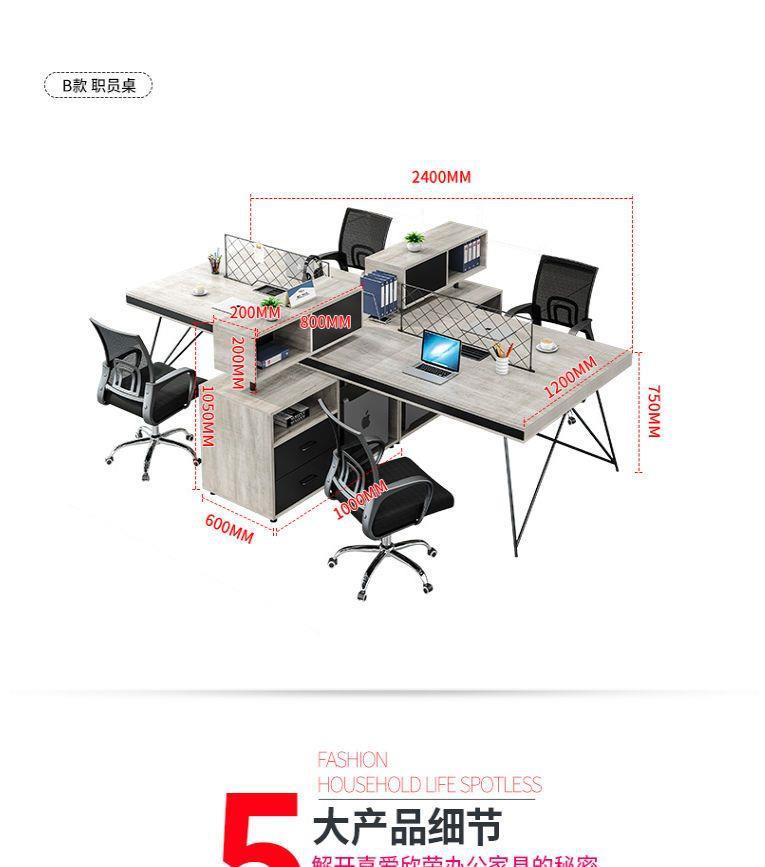 Bàn ghế nhân viên văn phòng kết hợp màn hình 2/4/6 người Phòng làm việc bàn máy tính nhân viên hiện đại đơn giản