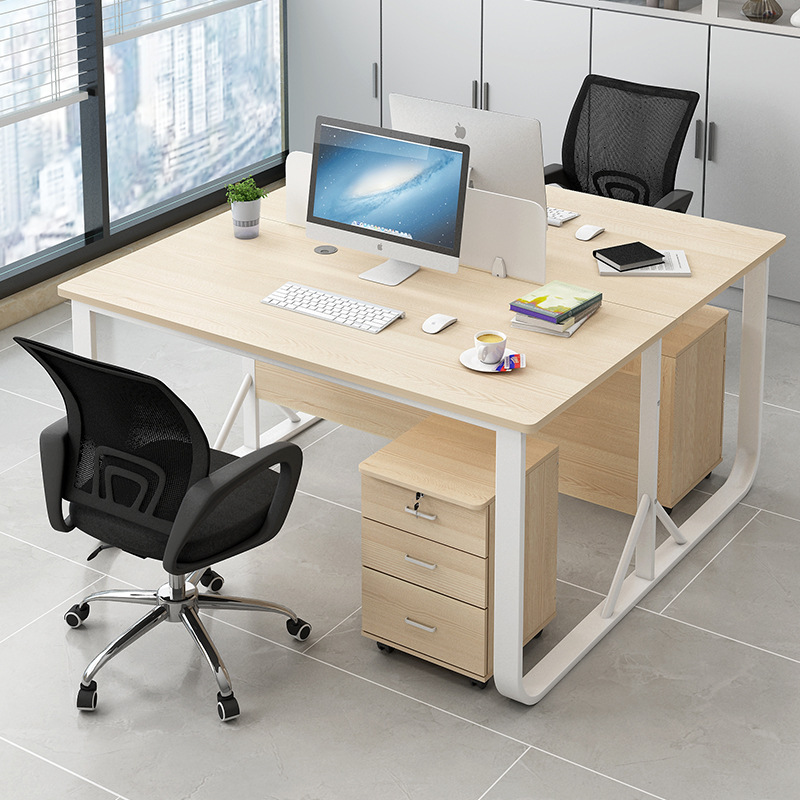 Bàn ghế nhân viên văn phòng kết hợp máy tính đôi tối giản hiện đại đối diện bàn làm việc