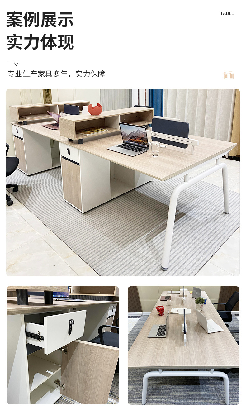 Bàn ghế nhân viên xuyên biên giới kết hợp ghế bàn máy tính nội thất văn phòng gỗ cứng bàn nhân viên màu sáng trạm