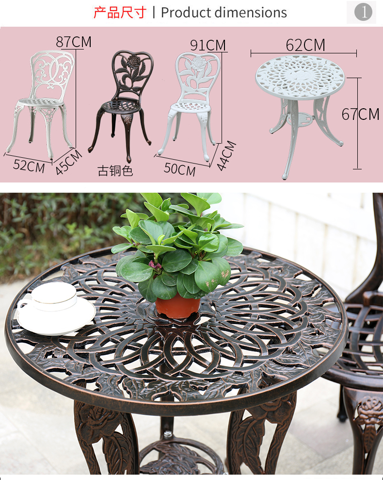 Bàn ghế nhôm đúc hoa văn hình hoa hồng tinh tế, sang trong. 1 00% các sản phẩm được nhập khẩu. Với mẫu mã đa dạng được thiết kế sang trọng,tinh tế từng chi tiết bền đẹp với mọi thời tiết. Luôn mang đến những sự lựa chọn thích hợp nhất về kiểu dáng. Tạo sự thân thiện và thoải mái cho cả gia đình khi ngồi bên nhau! GIÁ CẢ TỐT NHẤT THỊ TRƯỜNG! Liên hệ 0346.246.292 Thông số sản phẩm: Thương hiệu: Meike Model: 20200204 Chất liệu chính: Nhôm Hoa văn hình hoa hồng tinh tế sang trọng Chức năng bổ sung: tháo rời và lắp ráp Xuất xứ: Tỉnh Quảng Đông Thể tích đóng gói: 52cm * 44cm * 40cm