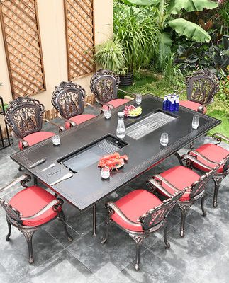 Bàn ghế nhôm đúc kèm bếp nướng nhập khẩu. được thiết kế để tạo điểm nhấn cho khu vực sân vườn, ban công hoặc không gian ngoài trời.