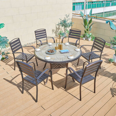Bàn ghế nhôm đúc khu giải trí, sân trong, ban công thoáng đãng, sân vườn biệt thự, ghế ngoài trời chống ăn mòn, chống thêu, chống nắng ngoài trời