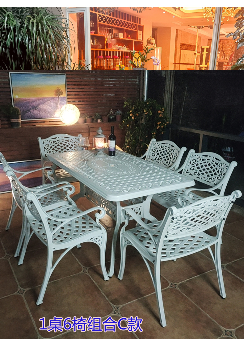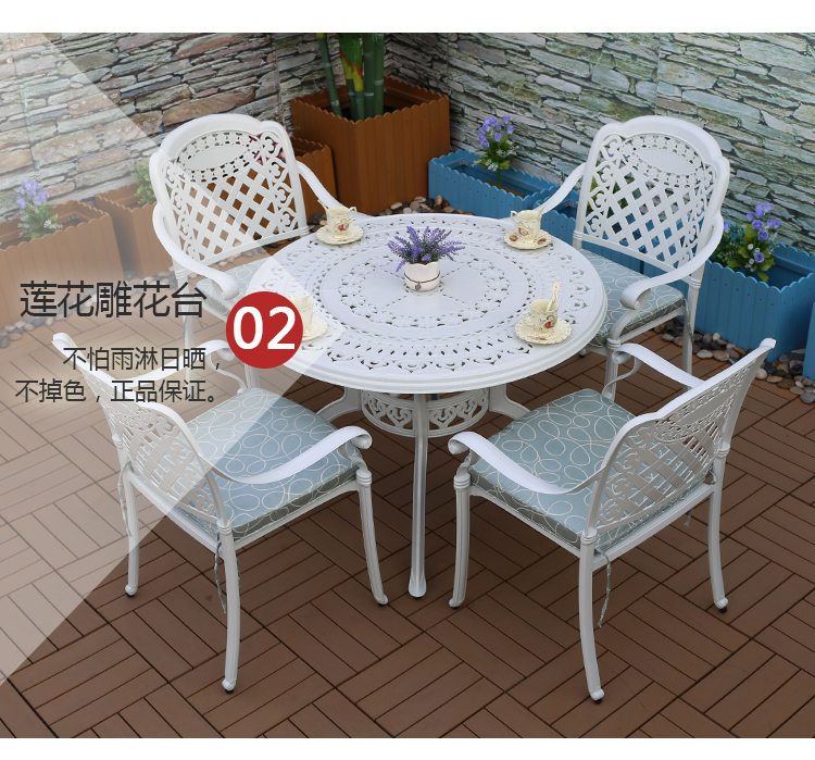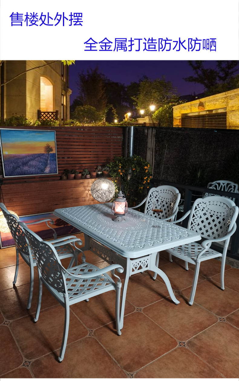 Sản phẩm nổi bật với các đặc điểm: Bàn ghế nhôm đúc màu trắng biệt thự sân vườn câu lạc bộ giải trí nội thất thư giãn đúc kết hợp hiên ngoài trời chạm khắc phong cách Châu Âu