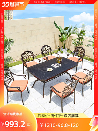 Bàn ghế nhôm đúc ngoài trời biệt thự bàn ghế sân vườn chống thấm chống ăn mòn ngoài trời chân sắt lộ thiên Bộ bàn ghế bắc âu