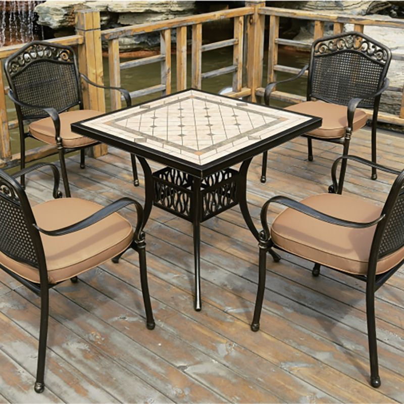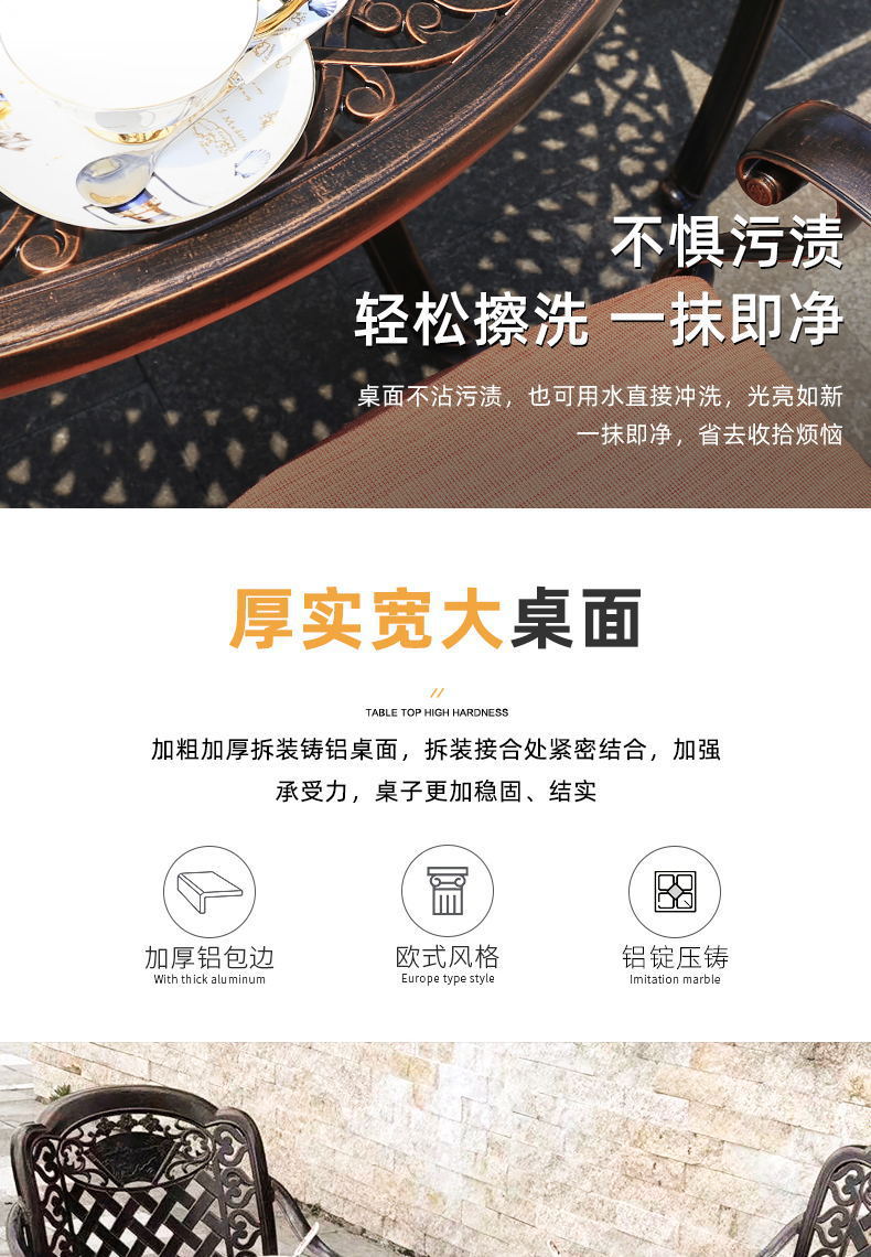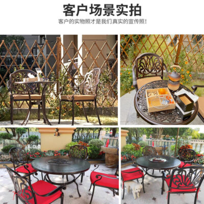 Bàn ghế nhôm đúc ngoài trời giải trí ngoài trời đơn giản ngoài trời ban công sân vườn sân vườn kết hợp bàn ghế sắt rèn chống mưa chống xước được thiết kế để tạo điểm nhấn cho khu vực sân vườn, ban công hoặc không gian ngoài trời.