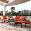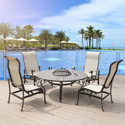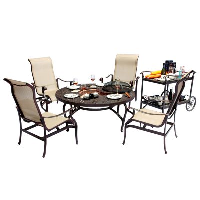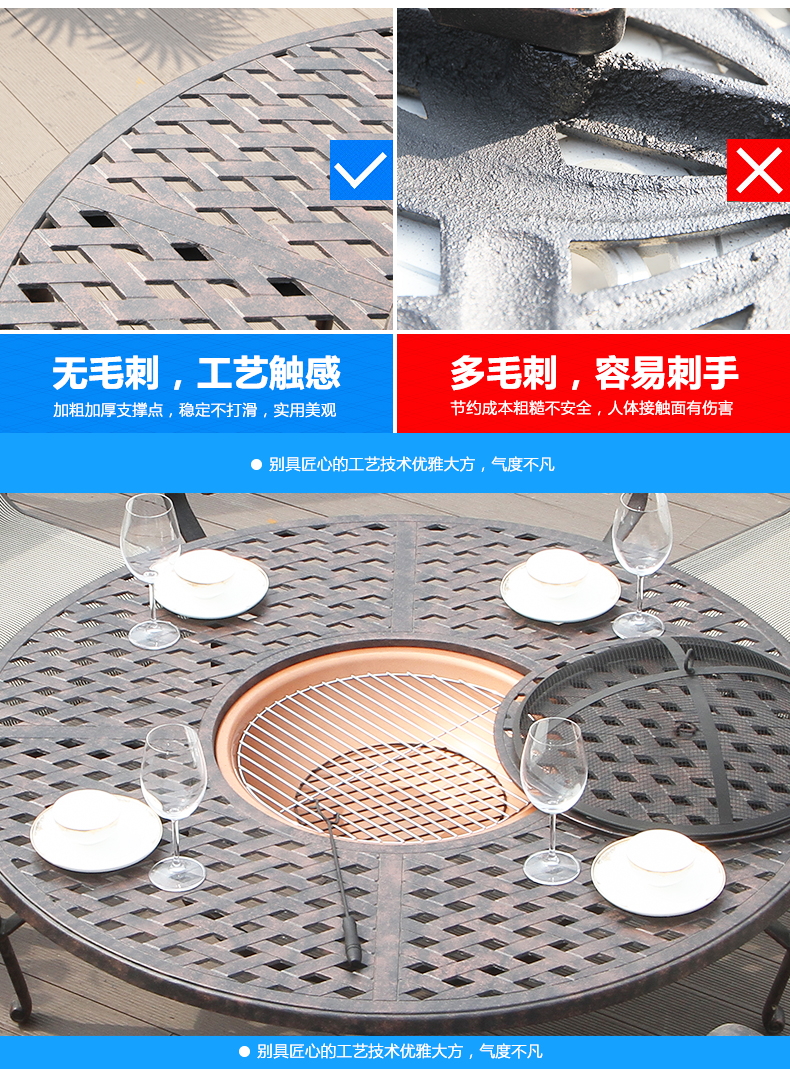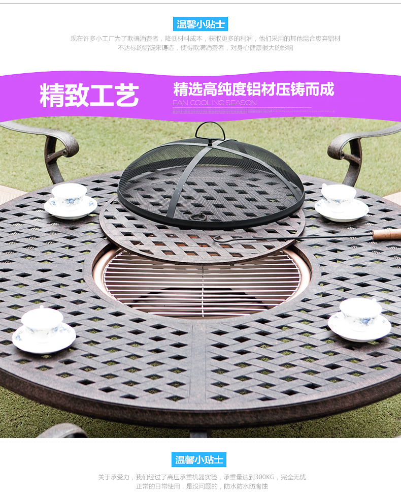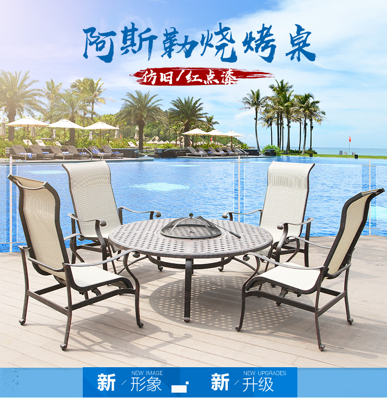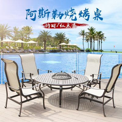 Bàn ghế nhôm đúc ngoài trời, kèm bếp nướng.