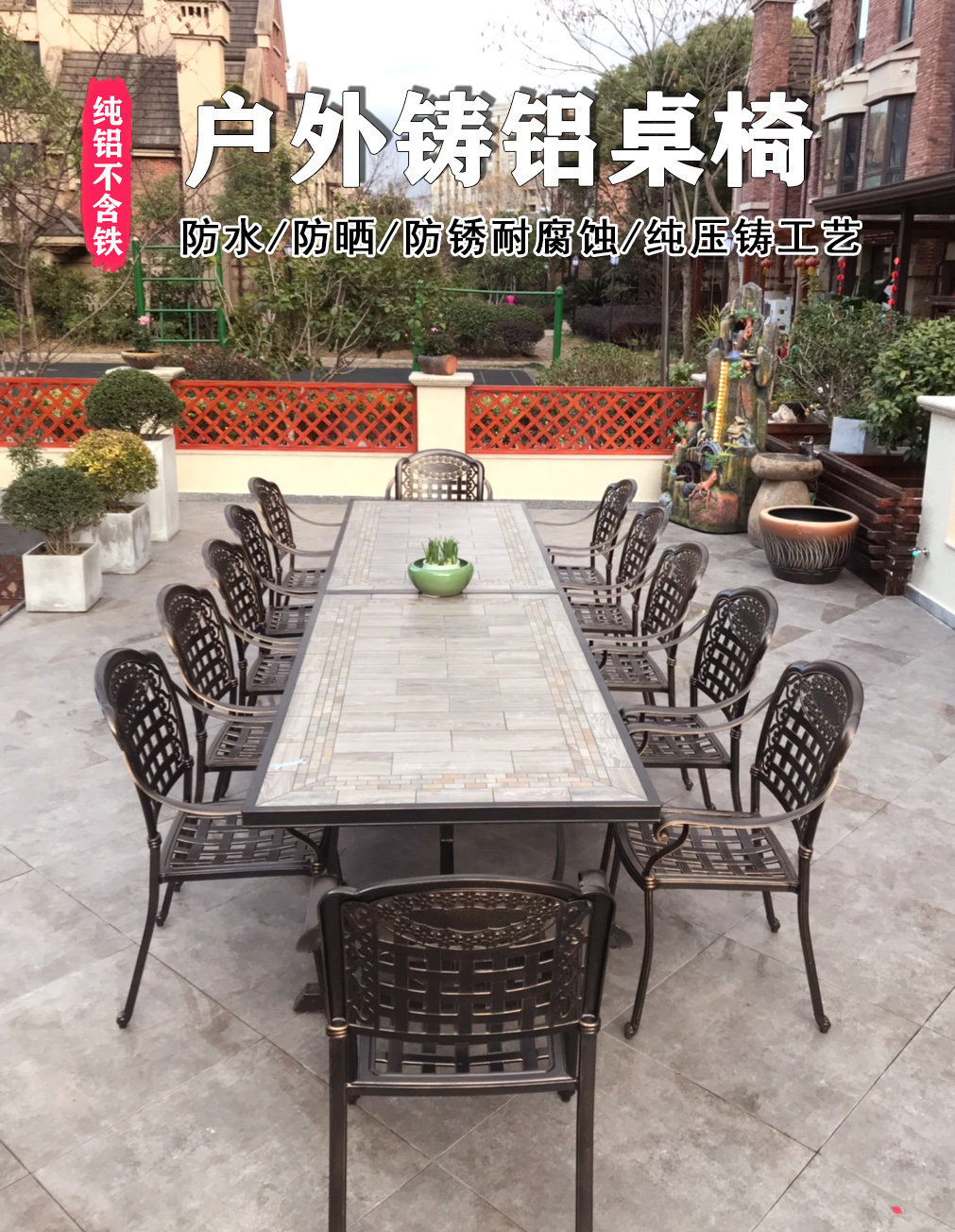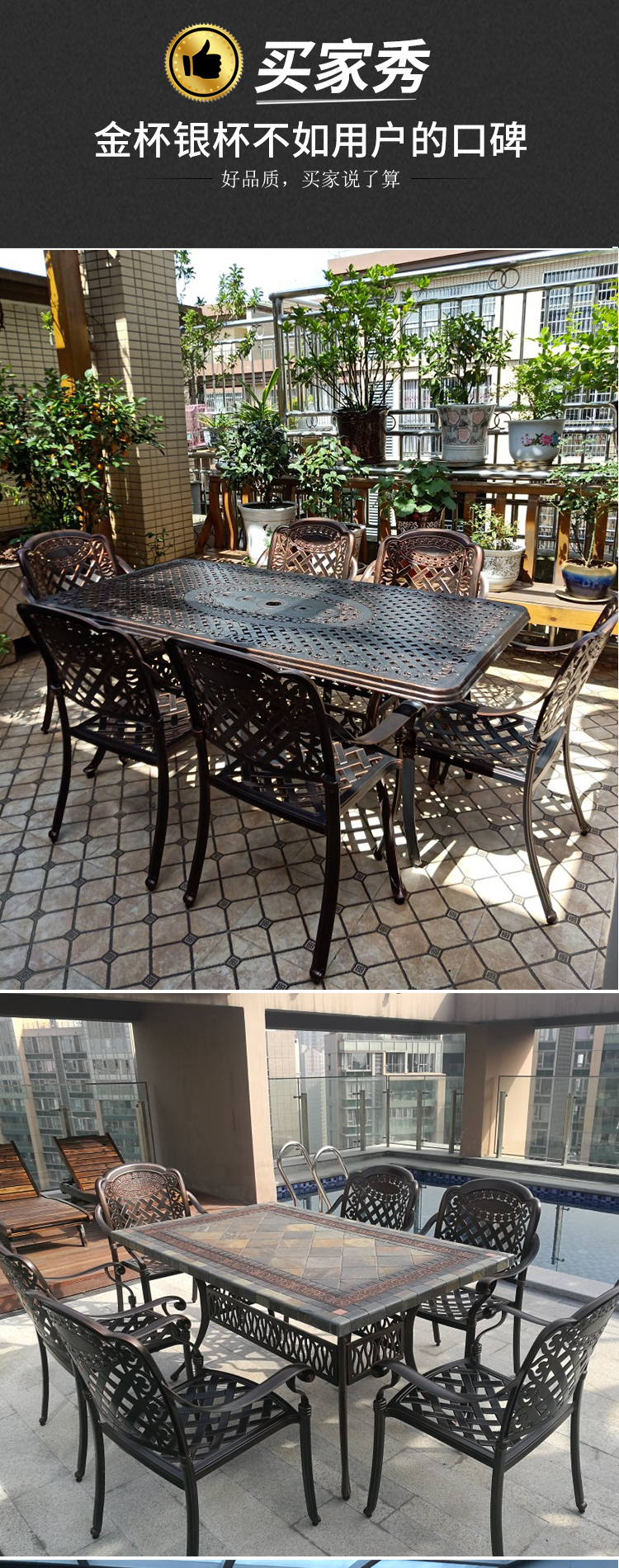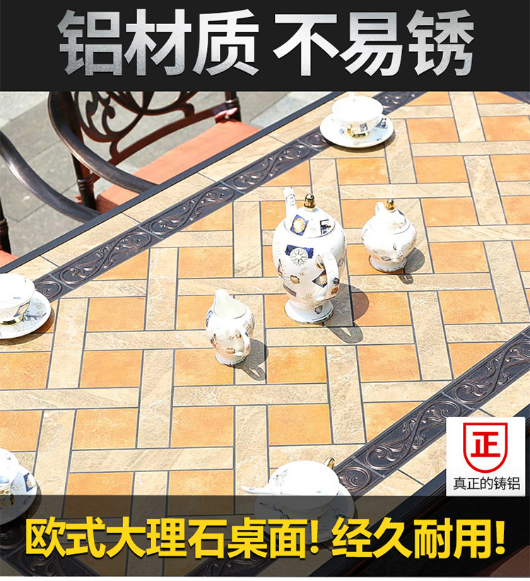 Bàn ghế nhôm đúc ngoài trời kết hợp bàn ăn giải trí thư giãn Châu Âu bàn ăn trong nhà nội thất trong nhà ý tưởng sân vườn đá cẩm thạch được thiết kế để tạo điểm nhấn cho khu vực sân vườn, ban công hoặc không gian ngoài trời.
