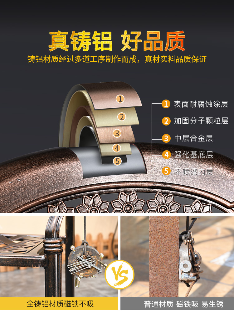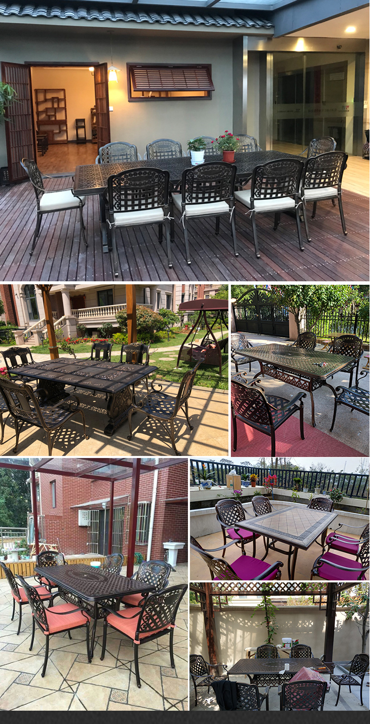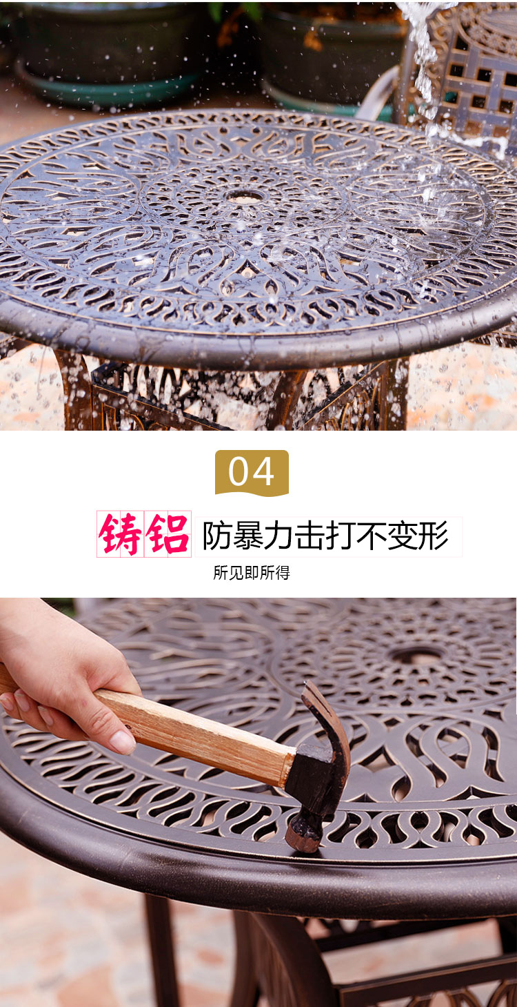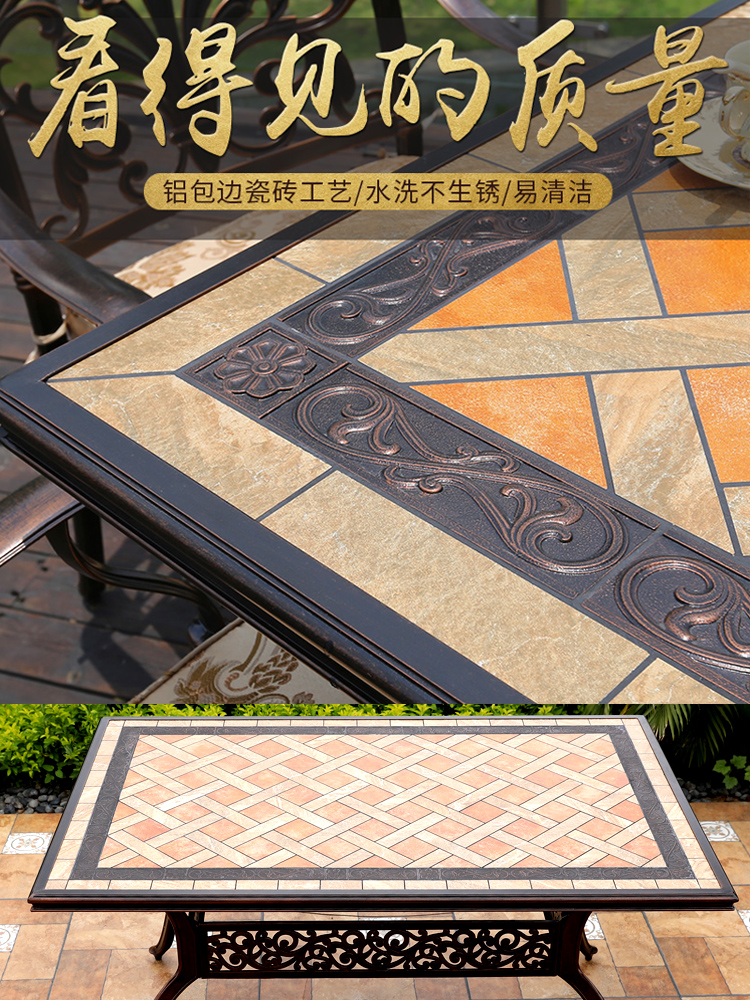 Bàn ghế nhôm đúc ngoài trời kết hợp bàn ăn giải trí thư giãn Châu Âu bàn ăn trong nhà nội thất trong nhà ý tưởng sân vườn đá cẩm thạch được thiết kế để tạo điểm nhấn cho khu vực sân vườn, ban công hoặc không gian ngoài trời.