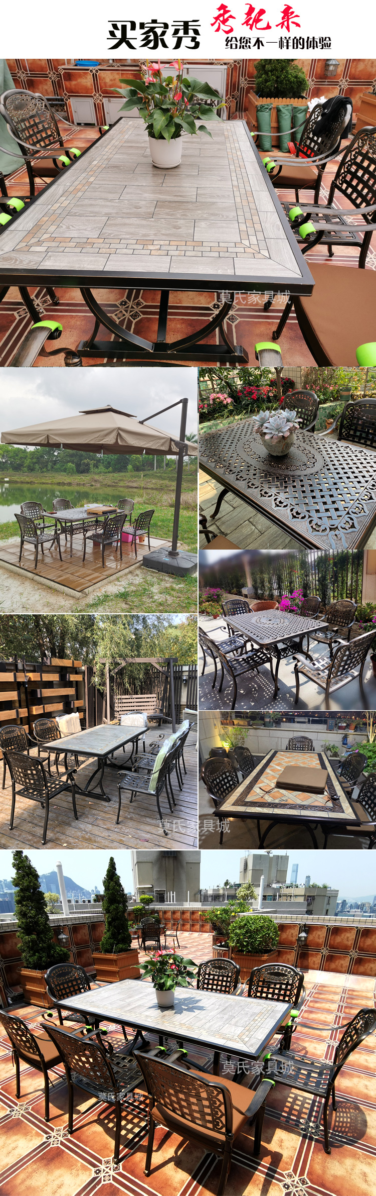 Bàn ghế nhôm đúc ngoài trời kết hợp bàn ăn giải trí thư giãn Châu Âu bàn ăn trong nhà nội thất trong nhà ý tưởng sân vườn đá cẩm thạch