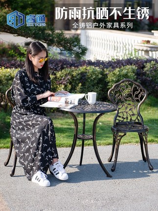 Bàn ghế nhôm đúc ngoài trời kết hợp sân vườn ngoài trời sắt rèn bàn ghế mây thư giãn ngoài trời ban công bàn cafe bộ ba mảnh