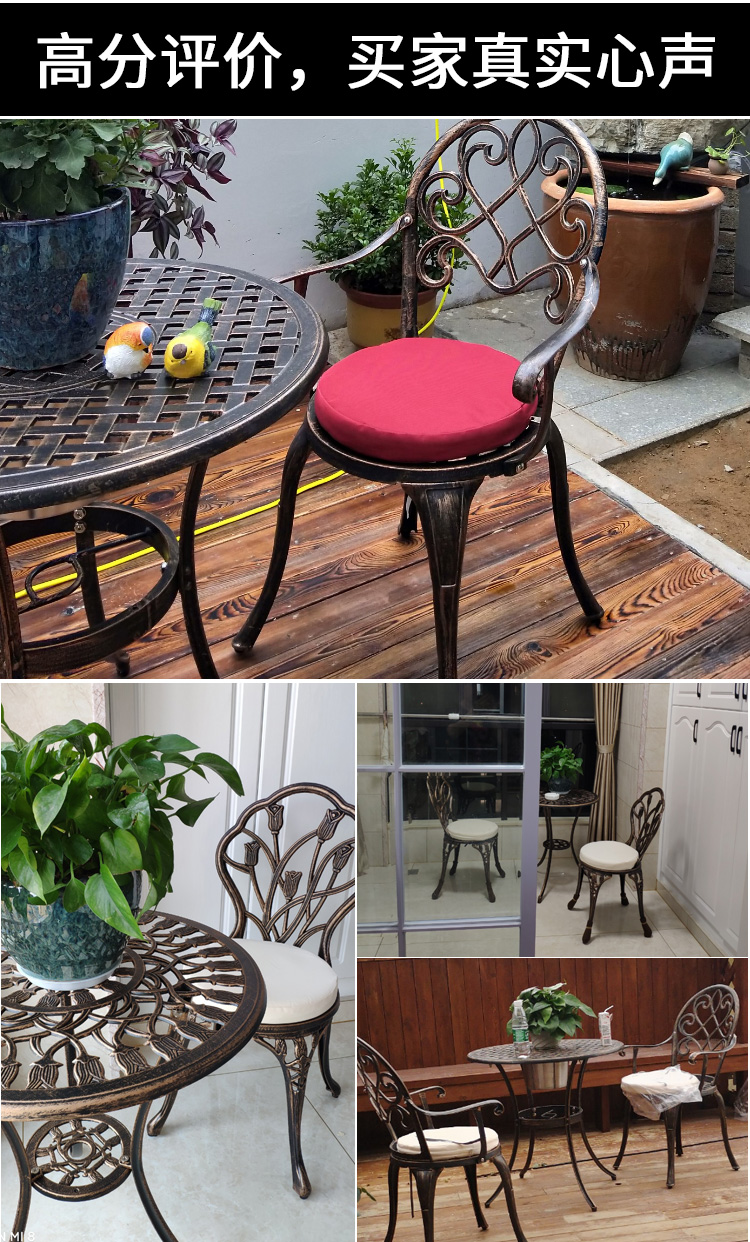 Bàn ghế nhôm đúc ngoài trời một bàn và hai ghế. được thiết kế để tạo điểm nhấn cho khu vực sân vườn, ban công hoặc không gian ngoài trời.