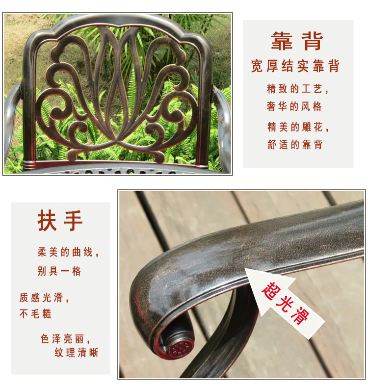 Sản phẩm nổi bật với các đặc điểm: Bàn ghế nhôm đúc ngoài trời sân vườn bộ bàn ghế thư giãn chống nắng chống nắng bàn ghế sắt rèn ngoài trời bàn ghế ngoài trời