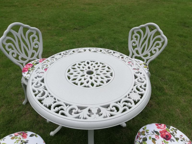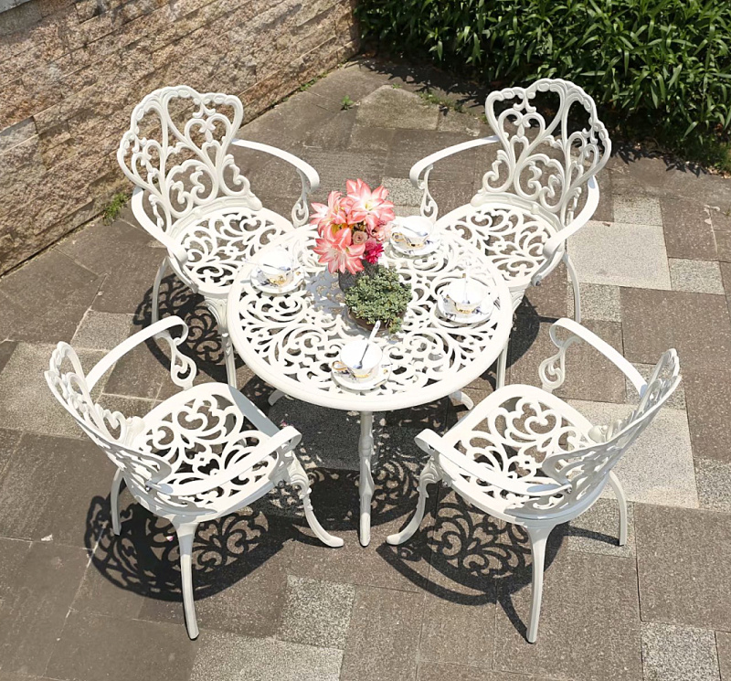 Bàn ghế nhôm đúc sân vườn ngoài trời kết hợp ban công bàn ghế nhôm đúc mỹ nghệ ngoài trời biệt thự vuông ba đến năm bộ được thiết kế để tạo điểm nhấn cho khu vực sân vườn, ban công hoặc không gian ngoài trời.