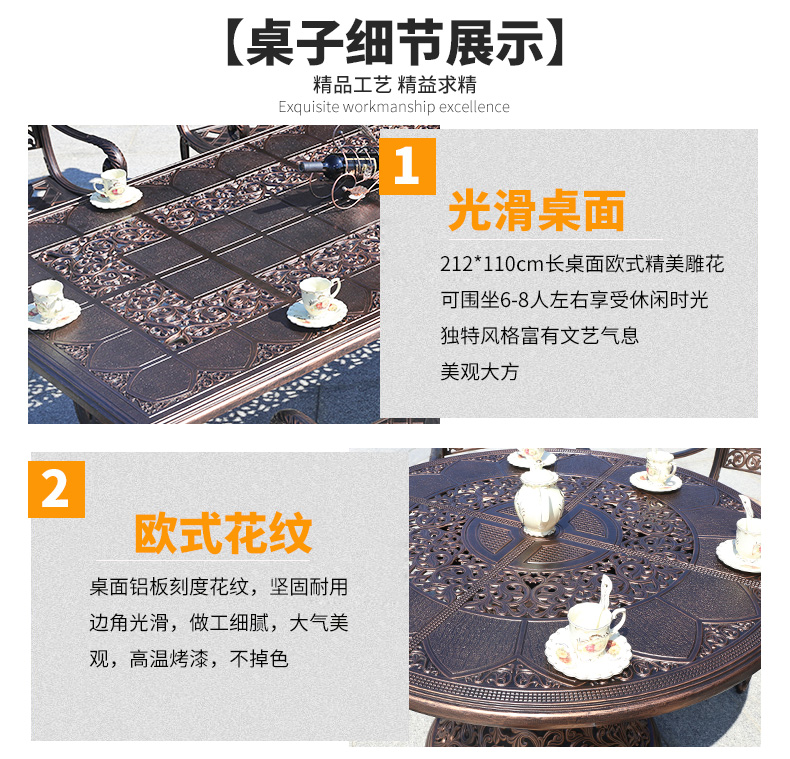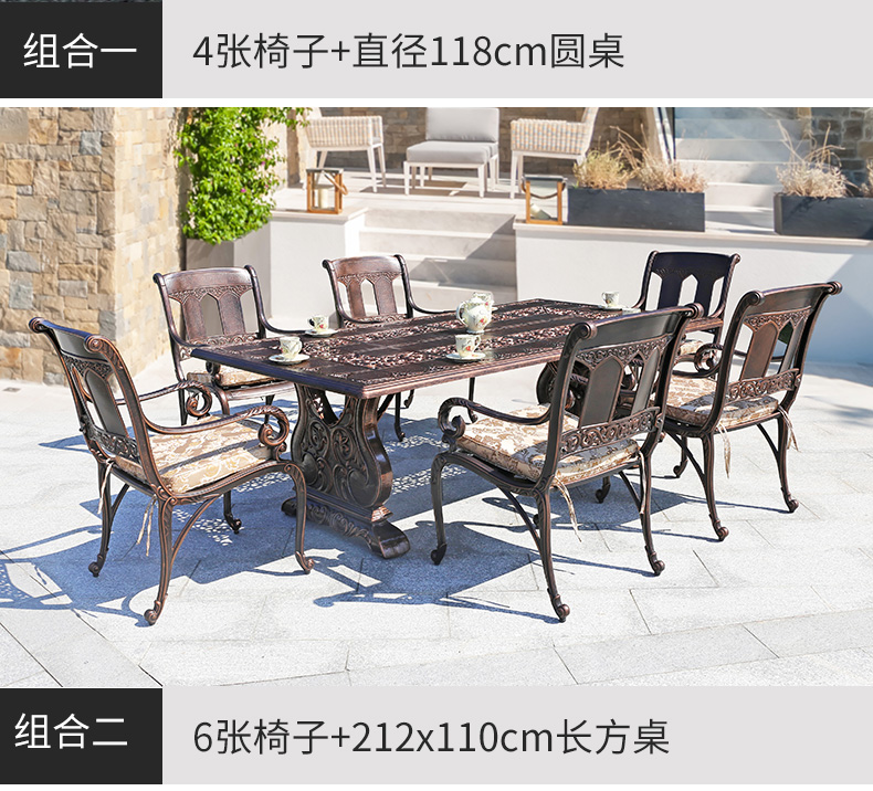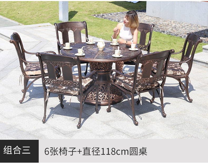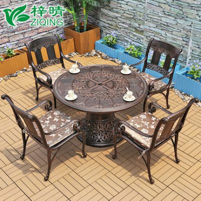Bàn ghế nhôm đúc sang trọng, phù hợp với mọi không gian vườn.
