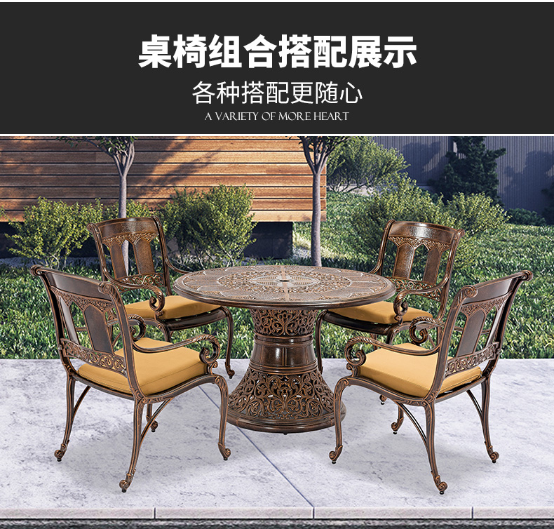 Bàn ghế nhôm đúc sang trọng, phù hợp với mọi không gian vườn. được thiết kế để tạo điểm nhấn cho khu vực sân vườn, ban công hoặc không gian ngoài trời.