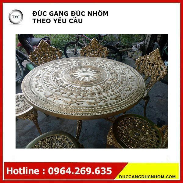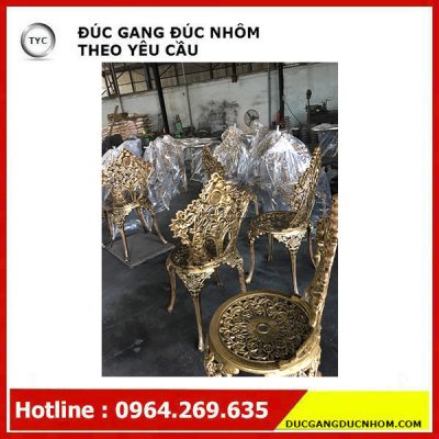 Bàn ghế nhôm hoa văn trống đồng. Bàn ghế nhôm sản xuất tại xưởng của chúng tôi có nhiều mẫu mã kiểu dáng khác nhau. Tuy nhiên loại được ưa chuộng nhất là bàn ghế nhôm kiểu Châu Âu. Sản phẩm bền và đẹp, phủ sơn 5 lớp phù hợp để ngoài trời , chịu mưa nắng. Bàn nhôm : Đường kính 1.160mm. Cao khoảng 700mm. Nặng khoảng 45kg. Giá 6.600.000 VNĐ/ chiếc Ghế nhôm : ngồi cao 400-420mm. Phần tựa khoảng 1.000mm. Nặng khoảng 10 – 12kg. Giá 1.260.000 VNĐ/ Chiếc Bàn ghế nhôm kiểu dáng Châu Âu là sự kết hợp hài hòa giữa nét cổ điển và hiện đại trong thiết kế, giúp cho sản phẩm có sự độc đáo, đẹp và sang trọng tới từng chi tiết. Bàn ghế nhôm hoa văn trống đồng Bàn ghế nhôm kiểu dáng Châu Âu là sự kết hợp hài hòa giữa nét cổ điển và hiện đại trong thiết kế, giúp cho sản phẩm có sự độc đáo, đẹp và sang trọng tới từng chi tiết. Bàn ghế nhôm hoa văn trống đồng Bàn ghế nhôm cổ điển vàng đen Vậy bàn ghế nhôm kiểu dáng châu âu có gì đặc biệt? An toàn khi sử dụng Sản phẩm được đúc bằng hợp kim nhôm có độ bền cao, chắc chắn và không lo gỉ sét khi để ngoài trời. Dễ dàng trang trí ở mọi không gian Bộ bàn ghế nhôm có thiết kế đẹp và độc đáo không chỉ là một sản phẩm làm đẹp cho không gian gia đình, mà nó còn có thể tạo nên sự khác biệt cho các quán cafe sân vườn, nhà hàng hay cả những resort cao cấp. Không gian của bạn sẽ trở nên đẹp và độc đáo hơn Bàn ghế nhôm được thiết kế kế theo phong cách cổ điển châu âu cùng với bàn tay tỷ mỉ của các nghệ nhân đúc đã tạo ra một sản phẩm không chỉ giúp người ngồi có cảm giác thoải mái mà nó còn rất đẹp và độc đáo. Vẻ đẹp trường tồn theo thời gian Bạn có thể dễ dàng lau chùi làm sạch bằng nước hoặc có thể thay đổi màu sơn theo ý thích mà không cần tốn bất kỳ một khoản phí dịch vụ nào. Sau 5 đến 7 năm quý khách sơn lại sản phẩm sẽ mới như lúc ban đầu . Sản phẩm trước khi sơn lại Sản phẩm sau khi sơn lại Sản phẩm sau khi sơn lại Kích thước của bàn: Mặt bàn có đường kính trung bình 110 cm Chiều cao của bàn trunh bình 75 cm kích thước của ghế: Rộng trunh bình 40,5 cm Cao trung bình 40,5 cm 4 Lý do bạn lựa chọn chúng tôi: – Là đơn vị sản xuất trực tiếp và có kinh nghiệm lâu năm trong việc sản xuất bàn ghế nhôm. – Đội ngũ nhân viên năng động, chuyên nghiệp và giàu kinh nghiệm. – Luôn mang tới khách hàng những sản phẩm có chất lượng tốt với giá RẺ NHẤT – Khách hàng được tư vấn tạo mẫu chuyên nghiệp và hoàn toàn MIỄN PHÍ. Bạn thử tưởng tượng xem, chẳng phải sẽ rất tuyệt! Nếu sau một ngày làm việc vất vả, buổi tối về cả gia đình ngồi quây quần bên nhau tâm sự và tận hưởng không gian trong lành ngay tại chính ngôi nhà thân yêu của mình. Điều tuyệt vời đó không chỉ giúp bạn có một tinh thần thoải mái cho ngày mai, mà nó còn là một sợi dây thần kỳ giúp ” gắn kết yêu thương” Từ khóa : duc gang , duc gang, đúc gang theo yêu cầu, duc gang theo yeu cau, duc gang duc nhom, đúc gang đúc nhôm. Bàn ghế gang, ban ghe gang, bàn ghế gang châu âu, ban ghe gang chau au. CÂU HỎI THƯỜNG GẶP : VẬN CHUYỂN : Hàng hóa có được vận chuyển về tận nhà không ? => Hiện chúng tôi chỉ hỗ trợ vận chuyển trên những tuyến đường chính, tuyến quốc lộ Bắc Nam . Nếu nhà của quý khách ở cách xa những tuyến đường chính có thể liên hệ hỗ trợ vận tải ở địa phương. THANH TOÁN : Thanh toán sau có được không ? => Hiện tại chúng tôi chưa hỗ trợ thanh toán sau. Bởi chúng tôi không làm hàng sẵn để bán, khi có đơn đặt hàng chúng tôi mới bắt đầu làm hàng. Bởi vậy, nếu quý khách đặt hàng nhưng không nhận hàng chúng tôi phải chuyển sản phẩm thành nguyên lệu hoặc lưu kho trong thời gian dài. Hiện các đơn đặt hàng quý khách thanh toán trước 20% giá trị đơn đặt hàng và 80% còn lại thanh toán khi nhận hàng. BẢO TRÌ : Sản phẩm của chúng tôi có được hỗ trợ bảo trì không ? => Tùy từng mặt hàng chúng tôi có thể hỗ trợ sơn lại, đúc lại 1 số chi tết bị hỏng. Tuy nhiên chi phí bảo trì chúng tôi vẫn tính theo giá sản phẩm. PHỤ KIỆN : Có hỗ trợ các phụ kiện kèm theo ? => Hiện nay chúng tôi chỉ hỗ trợ các phụ kiện bằng nhôm , các phụ kiện bằng kính, gỗ, cao su thì tùy thuộc vào các nhà cung cấp lân cận. Tùy thuộc vào yêu cầu chúng tôi sẽ báo lại với quý khách cụ thể. LIÊN HỆ ĐẶT HÀNG XÍCH ĐU NHÔM, BÀN GHẾ GANG VÀ NHÔM : 0964.269.635