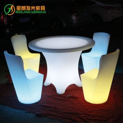 Bàn ghế nhựa dạ quang ngoài trời Xinglang LED, một bàn sáu ghế kết hợp nội thất dạ quang, biệt thự sân vườn trọn bộ bàn ghế