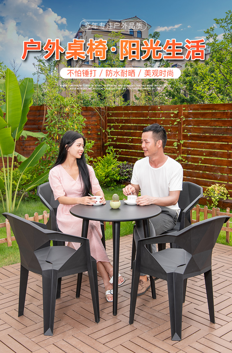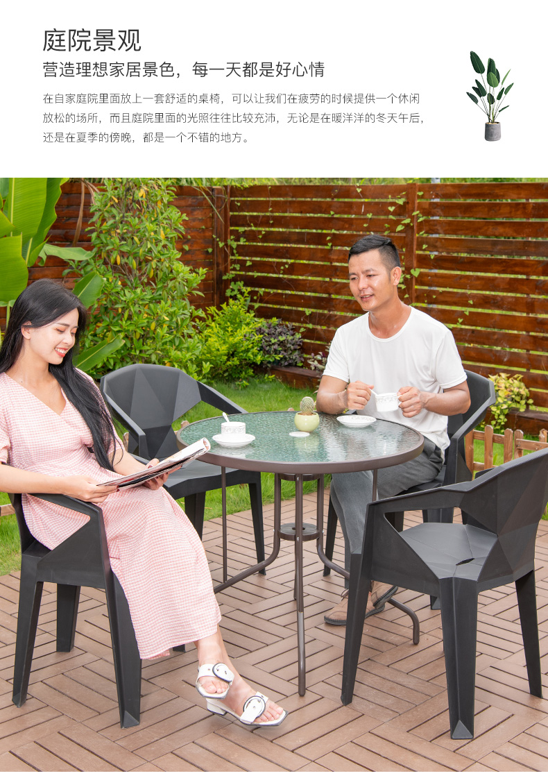 Bàn ghế nhựa PVC sân vườn được thiết kế để tạo điểm nhấn cho khu vực sân vườn, ban công hoặc không gian ngoài trời.