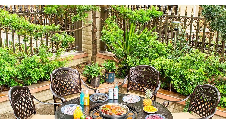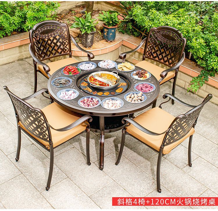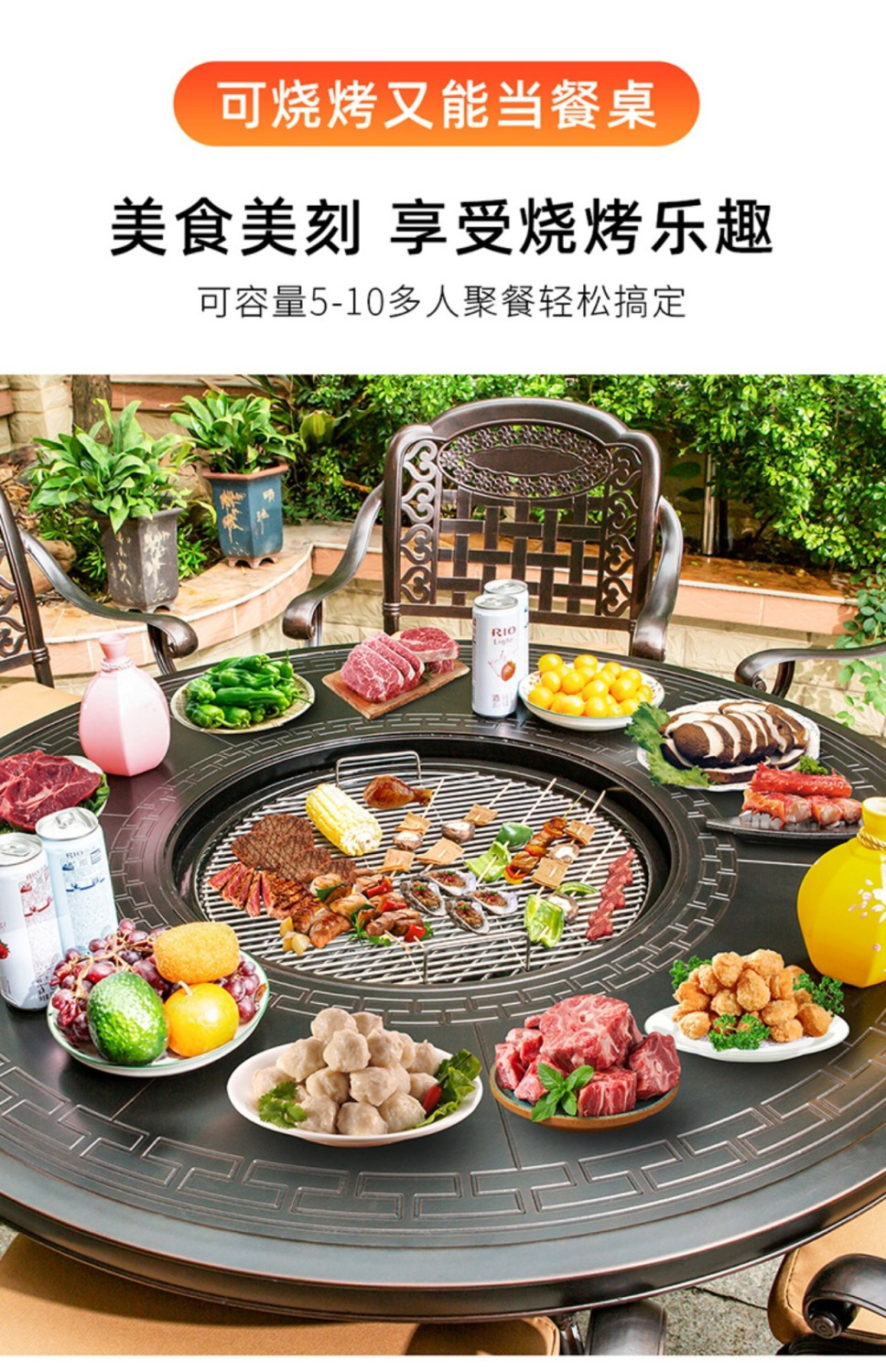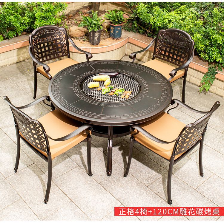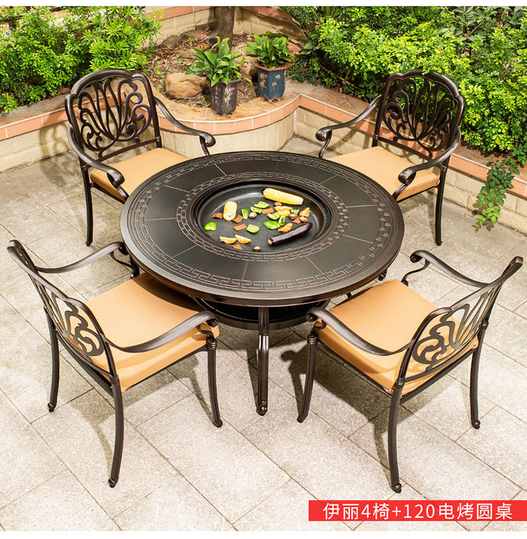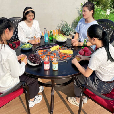 Bàn ghế nướng ngoài trời kết hợp sân vườn sân thượng ngoài trời tại nhà bếp nướng điện không khói than hoa lẩu nướng bàn ghế nhôm đúc được thiết kế để tạo điểm nhấn cho khu vực sân vườn, ban công hoặc không gian ngoài trời.