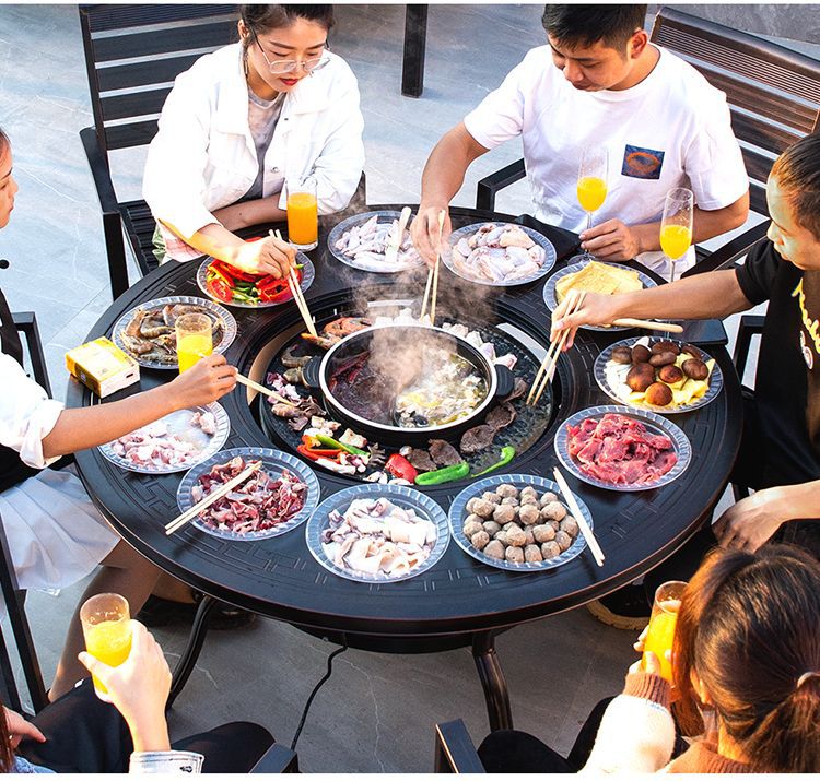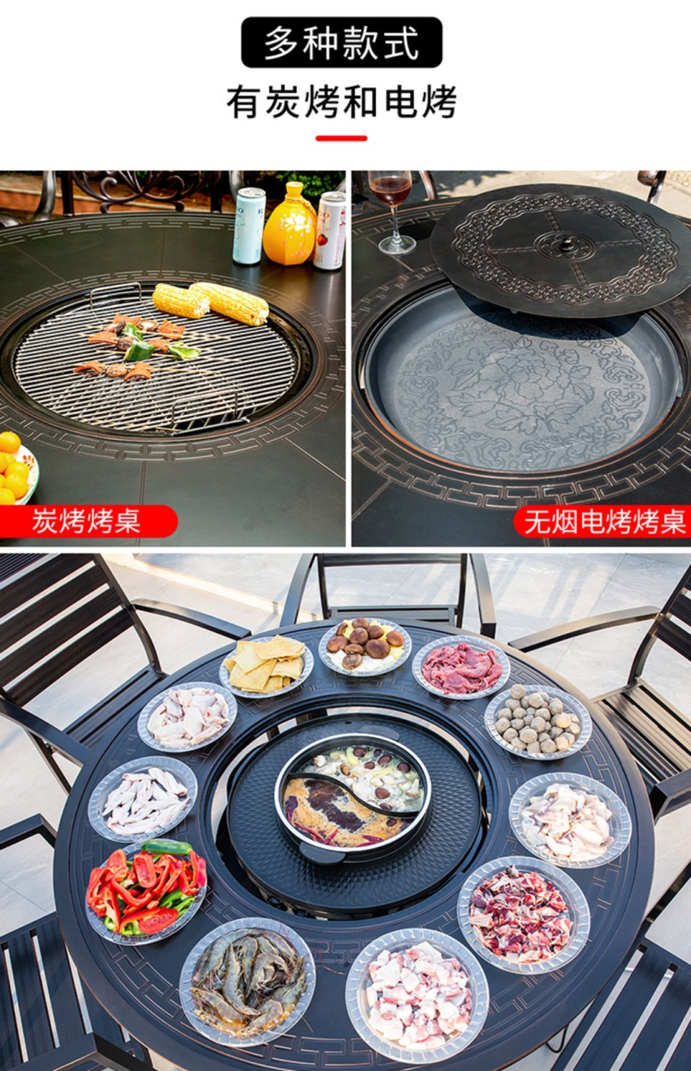 Bàn ghế nướng ngoài trời kết hợp sân vườn sân thượng ngoài trời tại nhà bếp nướng điện không khói than hoa lẩu nướng bàn ghế nhôm đúc