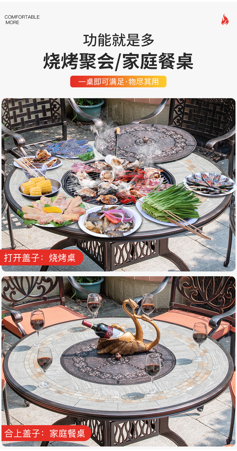 Sản phẩm nổi bật với các đặc điểm: Bàn ghế nướng ngoài trời nhôm đúc phong cách Châu Âu kết hợp sân vườn sân thượng bếp nướng điện than nướng ngoài trời bàn ghế sắt rèn