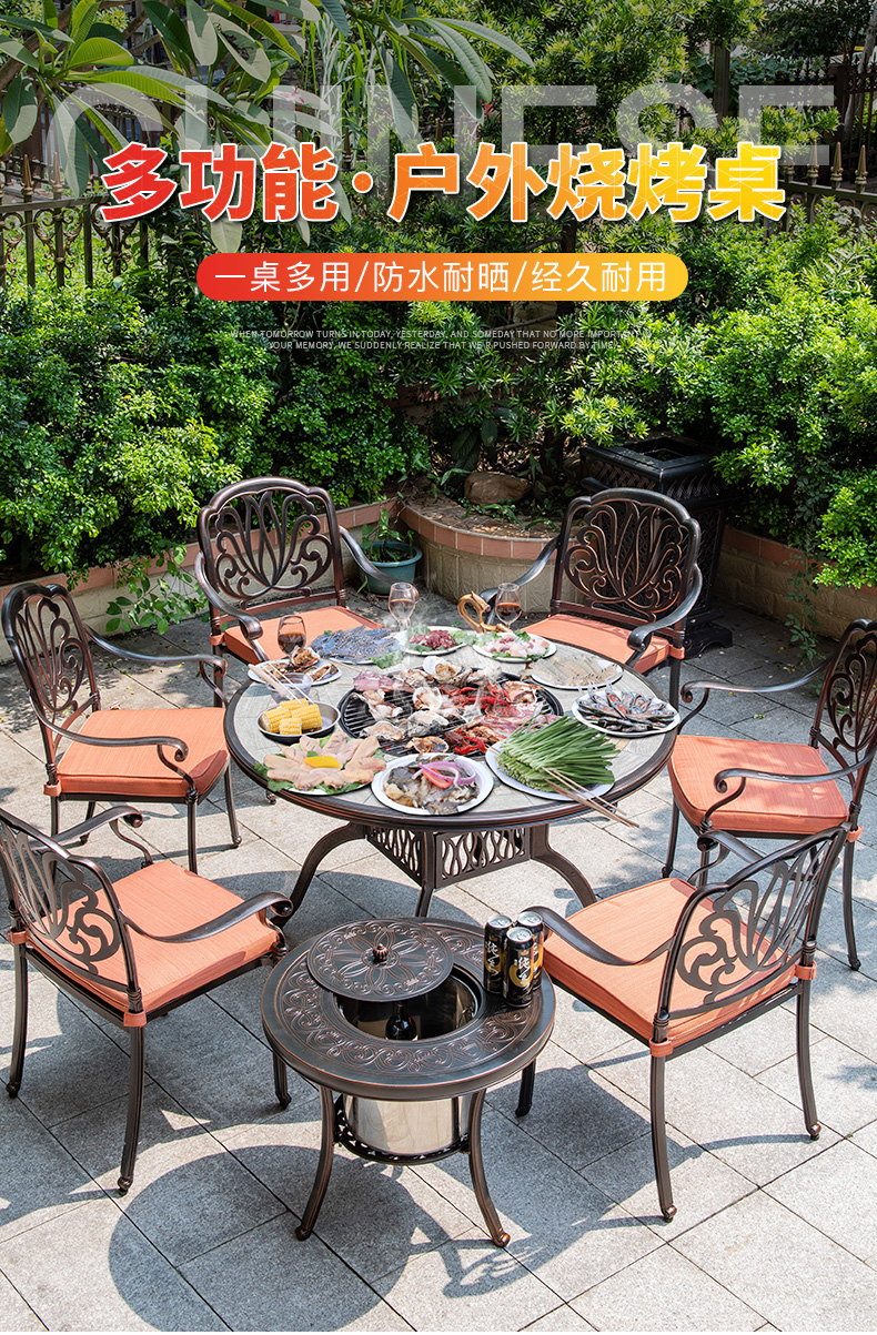 Bàn ghế nướng ngoài trời nhôm đúc phong cách Châu Âu sân vườn sân thượng bếp nướng điện than nướng ngoài trời bàn ghế sắt rèn là lựa chọn lý tưởng cho không gian công cộng, sân vườn hoặc khu đô thị. Sản phẩm giúp nâng cao hình ảnh chuyên nghiệp và sạch đẹp cho môi trường sống.