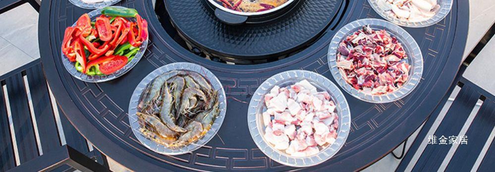 Sản phẩm nổi bật với các đặc điểm: Bàn ghế nướng ngoài trời sân vườn nhôm đúc bếp nướng điện không khói tích hợp sân vườn sân thượng thép kết hợp bàn ăn giải trí ngoài trời