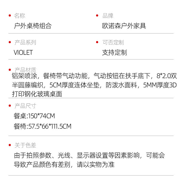 Sản phẩm nổi bật với các đặc điểm: Onuosen sân ngoài trời bàn ghế giải trí ngoài trời biệt thự tối giản hiện đại sân vườn dệt mây khí nén kết hợp bàn ghế ăn