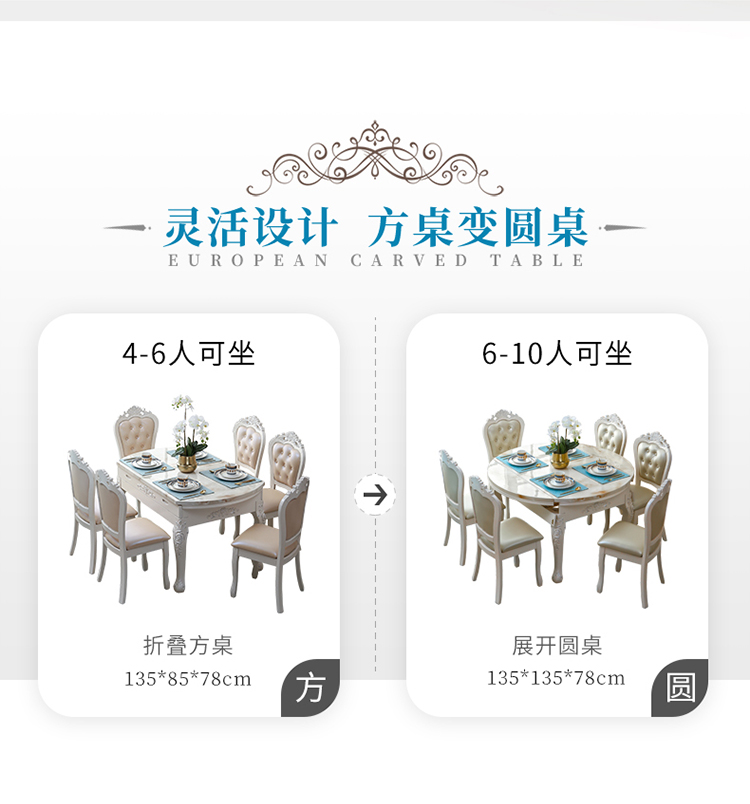 Bàn ghế phòng ăn nhập khẩu, phong cách châu Âu, sang trọng, bắt mắt. Mặt đá cẩm thạch tinh tế. – Bàn ăn nhập khẩu cao cấp