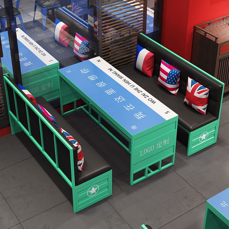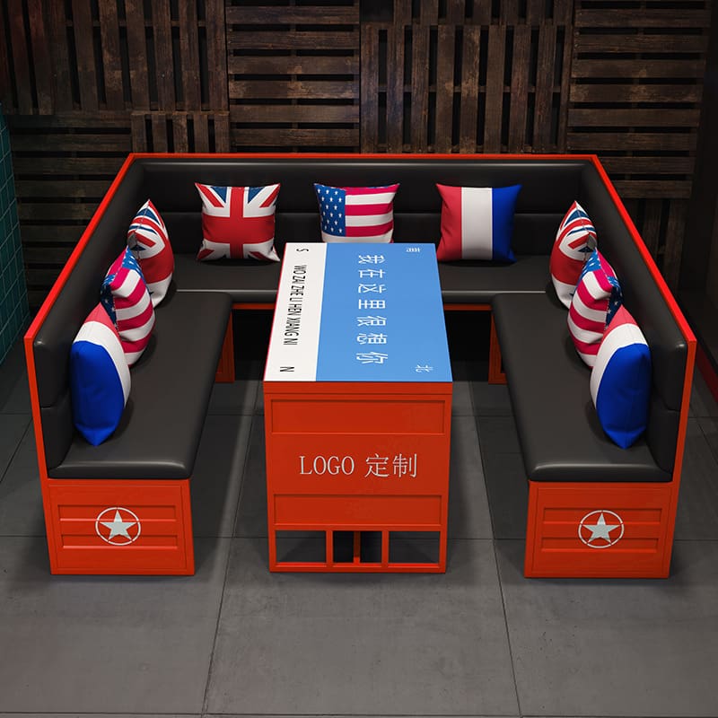 Bàn ghế Phong cách công nghiệp ghế sofa quầy bar Bàn ghế – BGCF-1808 – Mã sản phẩm BGCF-1808. Phong cách công nghiệp thẻ ghế sofa quầy bar bàn ghế kết hợp thanh lưới sáng tạo bàn gỗ nguyên khối màu đỏ quán cà phê nhà hàng quán cà phê