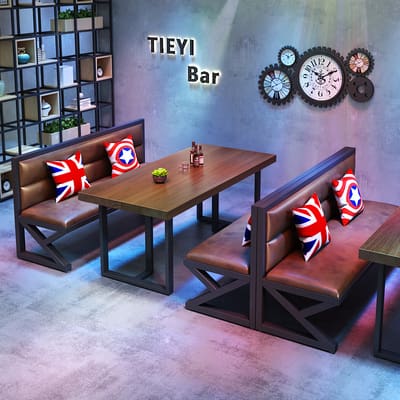 Bàn ghế Phong cách công nghiệp quầy bar ghế bar ghế sofa – BGCF-374 – Mã sản phẩm BGCF-374. Phong cách công nghiệp quầy bar ghế bar ghế sofa ghế nhà hàng thịt nướng nhà hàng bàn tròn lớn quán cà phê quán trà sữa bàn ghế kết hợp