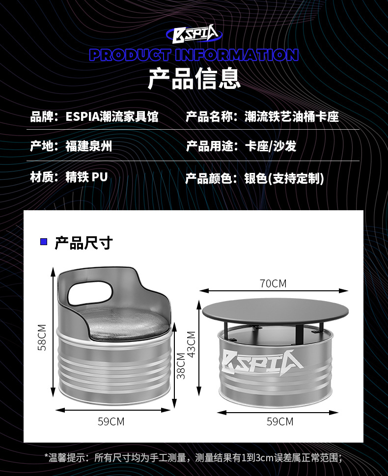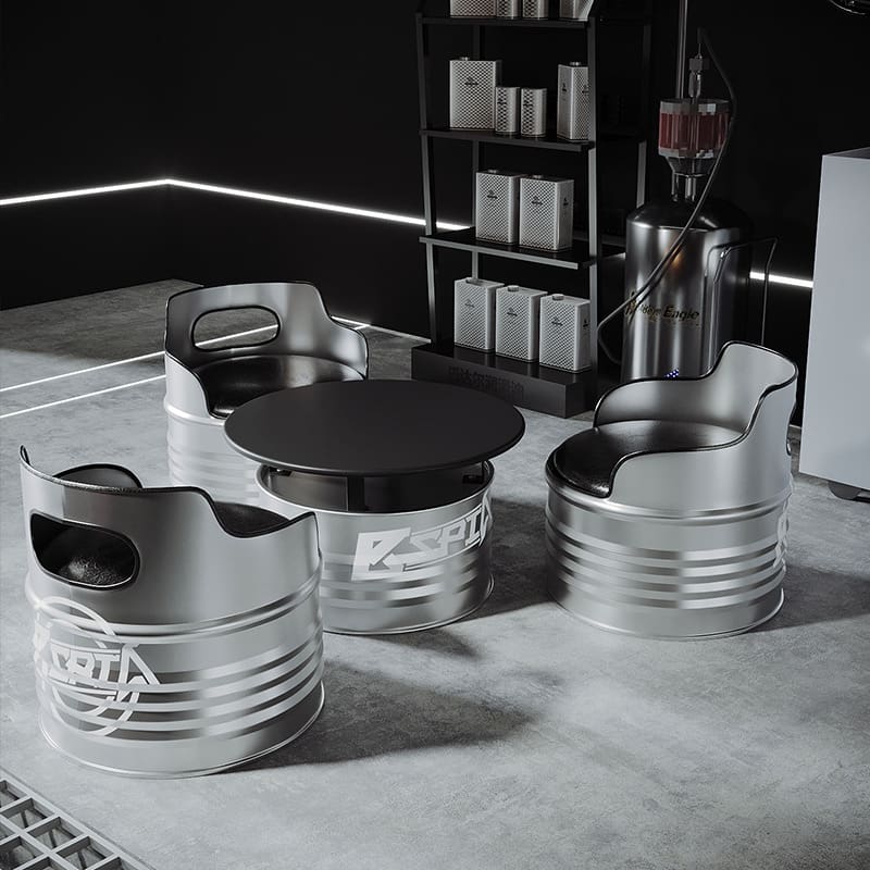 Bàn ghế Phong cách công nghiệp sáng tạo thùng dầu ghế sofa – BGCF-1668 – Mã sản phẩm BGCF-1668. Phong cách công nghiệp sáng tạo thùng dầu thẻ ghế sofa thanh cà phê cửa hàng sửa chữa ô tô tiếp tân thương mại bàn cà phê bộ bàn ghế
