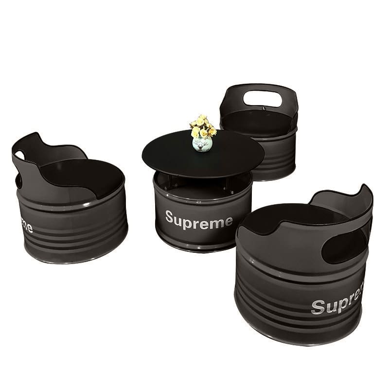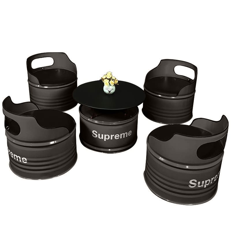 Bàn ghế Phong cách công nghiệp sáng tạo thùng dầu ghế sofa – BGCF-1736 – Mã sản phẩm BGCF-1736. Phong cách công nghiệp sáng tạo thùng dầu thẻ ghế sofa quầy bar trong suốt quầy lễ tân quán cà phê quầy bar thương mại bàn cà phê bằng sắt rèn kết hợp bàn ghế