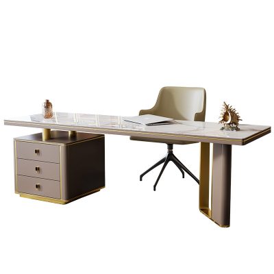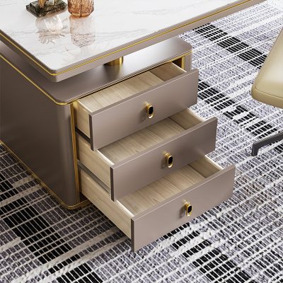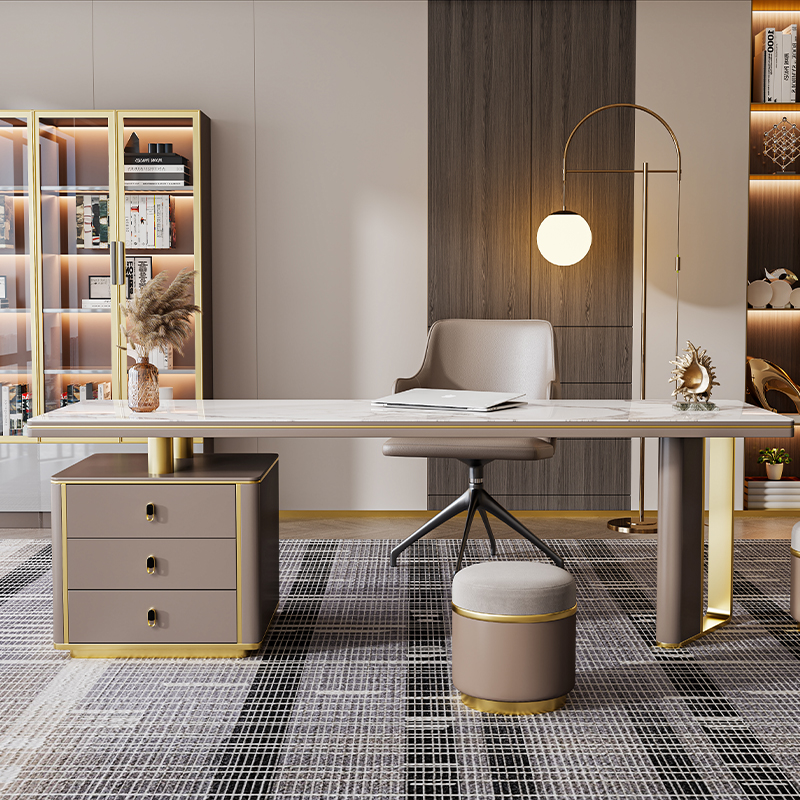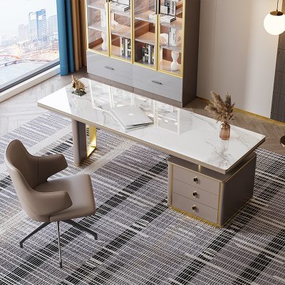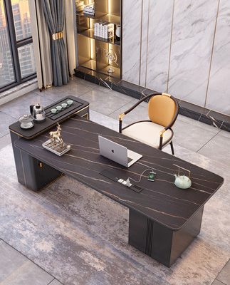 Bàn ghế phòng làm việc mặt đá phiến, chất liệu thép không gỉ titan, tối giản, hiện đại.