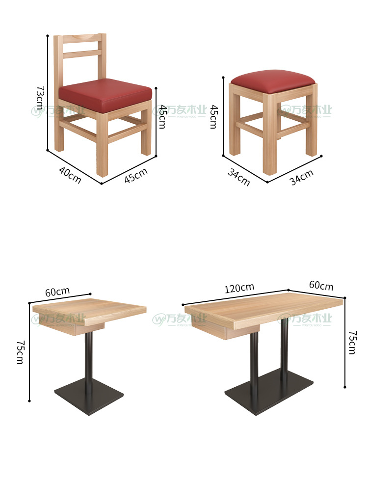 Mã số: WY2023-02 Thương hiệu: Gỗ Wanyou Màu sắc: Bàn vuông veneer 60 * 60 / Bàn dài veneer 120 * 60 / Bàn vuông viền gỗ đặc 60 * 60 (có ngăn kéo) / Bàn dài viền gỗ đặc 120 * 60 (có ngăn kéo) ngăn kéo) ngăn kéo)/ghế ăn gỗ đặc màu đỏ/ghế gỗ đặc màu cà phê/ghế gỗ đặc màu đỏ/sàn màu cà phê 1,2m/sàn đỏ 1,2m/sàn đỏ 1,2m Đã được cấp bằng sáng chế: Không Khớp hoàn toàn: Khớp thông số kỹ thuật: 120* 60 Chuyển đổi đơn vị thống nhất: 0.0 Có mô hình 3D hay không: Không Có giao hàng tận nơi hay không: Giao hàng xuống tầng dưới Có cung cấp dịch vụ lắp đặt hay không: Không Có phải là người nộp thuế chung hay không: Có Chức năng: Vật liệu khác: Gỗ nguyên khối Kích thước: Chính thức cấu hình tiêu chuẩn Không gian: Địa điểm thương mại Đối tượng áp dụng: Người lớn Dù xuất khẩu xuyên biên giới Nguồn cung cấp đặc biệt: Không Số chứng nhận: 1008602 Phong cách: Phong cách Trung Quốc mới Sản phẩm sở hữu thiết kế hiện đại, tinh tế, dễ dàng kết hợp với nhiều phong cách nội thất. Phù hợp sử dụng trong các không gian như quán cà phê, trà sữa, nhà hàng hoặc khách sạn. Là lựa chọn lý tưởng để nâng tầm không gian kinh doanh và mang lại trải nghiệm thoải mái cho khách hàng.