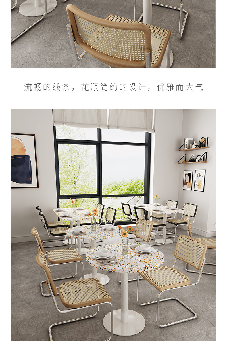 Mã sản phẩm: 651597417815 Thương hiệu: Màu sắc khác: Ghế sắt mây/Ghế sắt bọc mềm/Bàn tròn gỗ tần bì/Bàn gỗ tần bì/Bàn gỗ tần bì Gấp: Không Thông số kỹ thuật: Kích thước thông thường Có mẫu 3D không: Có Giao hàng tận nơi không đến cửa: Có được giao xuống tầng dưới Có dịch vụ lắp đặt không: Không Số bằng sáng chế: Không Có phải là người nộp thuế chung không: Có Chức năng: Chất liệu giá đỡ: gỗ nguyên khối Không gian: Nhà hàng Đối tượng áp dụng: Người lớn Nguồn cung cấp độc quyền cho xuất khẩu nước ngoài: Không Phong cách: Bắc Âu Sản phẩm sở hữu thiết kế hiện đại, tinh tế, dễ dàng kết hợp với nhiều phong cách nội thất. Phù hợp sử dụng trong các không gian như quán cà phê, trà sữa, nhà hàng hoặc khách sạn. Là lựa chọn lý tưởng để nâng tầm không gian kinh doanh và mang lại trải nghiệm thoải mái cho khách hàng.