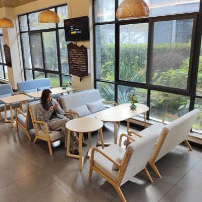 Bàn ghế Quán trà sữa Bàn ghế quán cà phê quán tráng miệng – BGCF-1635 – Mã sản phẩm BGCF-1635. Quán trà sữa kết hợp bàn ghế quán cà phê quán tráng miệng sofa bàn ghế khu vực nghỉ ngơi giải trí đơn giản quầy bar sách sofa đôi