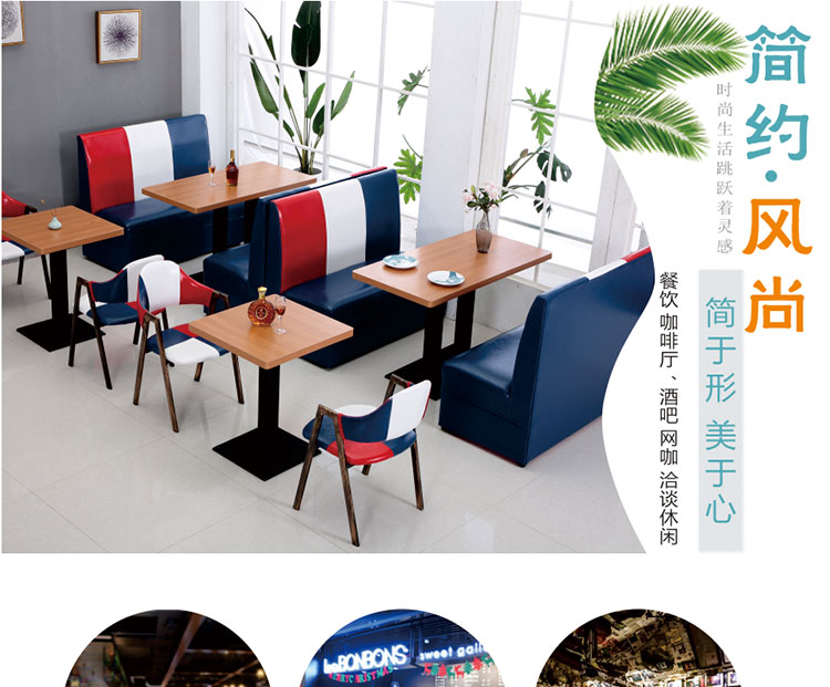 Bàn ghế quán trà sữa đơn giản ghế đôi thẻ sofa cà phê nhà hàng tây Hamburg bàn ăn kết hợp bàn ghế thương mại