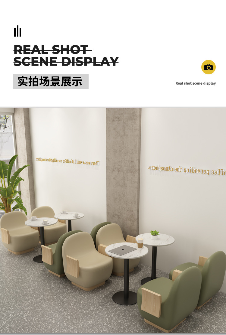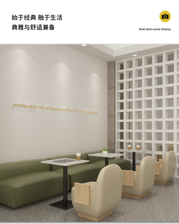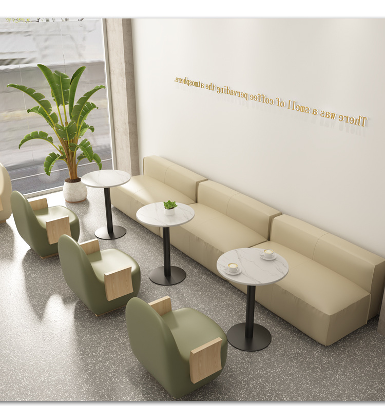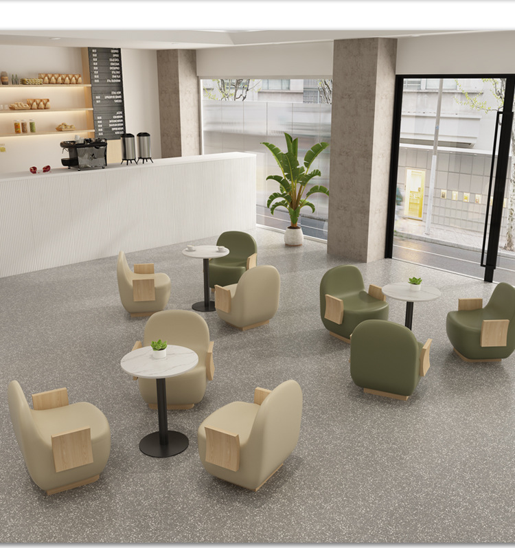 Mã sản phẩm: HT002 Thương hiệu: Hangtong Màu sắc: Sofa đơn nâu xanh/Sofa đơn màu be/Sofa đôi nâu xanh/Sofa đôi màu be/Bàn dài đá phiến cao 120*60*75/Bàn vuông đá phiến cao 60*60*75/ Bàn tròn phiến đá cao 60 Đường kính 75 / Bàn tròn phiến đá cao đường kính 60 75 Gấp: Không Model: HT002 Phương pháp xử lý: Tùy chỉnh theo bản vẽ Có bằng sáng chế hay không: Không Thông số kỹ thuật: 65 * 65 * 80 Có mô hình 3D hay không : Có Cho dù giao hàng tận nơi: giao hàng đến tòa nhà Có cung cấp dịch vụ lắp đặt hay không: Không Cho dù là người nộp thuế chung: Có Chức năng: vật liệu khác: gỗ nguyên khối Không gian: địa điểm thương mại Đối tượng áp dụng: Người lớn Cho dù xuất khẩu xuyên biên giới Cung cấp đặc biệt nguồn: Không Phong cách: hiện đại và đơn giản Sản phẩm sở hữu thiết kế hiện đại, tinh tế, dễ dàng kết hợp với nhiều phong cách nội thất. Phù hợp sử dụng trong các không gian như quán cà phê, trà sữa, nhà hàng hoặc khách sạn. Là lựa chọn lý tưởng để nâng tầm không gian kinh doanh và mang lại trải nghiệm thoải mái cho khách hàng.