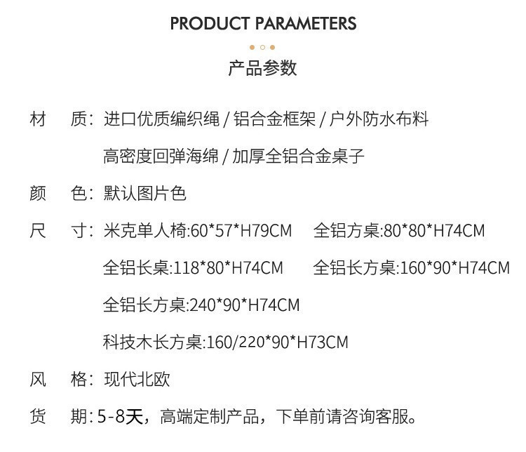 Bàn ghế sân ngoài trời ban công biệt thự ngoài trời ban công gỗ nhựa ghế thư giãn sân vườn ngoài trời chống nắng Bàn ghế mây Bắc Âu Mã sản phẩm: Tư vấn dịch vụ khách hàng Thương hiệu: Mingyi Outdoor Furniture Màu sắc: {Mick Chair}_1 pc [Không có đệm] / Bàn hình chữ nhật 160_90cm [Máy tính để bàn bằng gỗ kỹ thuật] / Bàn hình chữ nhật 220_90cm [Máy tính để bàn bằng gỗ kỹ thuật] / Bàn hình chữ nhật hoàn toàn bằng nhôm 160_90cm [ Bàn làm việc hoàn toàn bằng nhôm]/Bàn hình chữ nhật hoàn toàn bằng nhôm 240_90cm [Mặt bàn hoàn toàn bằng nhôm]/Bàn hình chữ nhật hoàn toàn bằng nhôm 118_80cm [Mặt bàn hoàn toàn bằng nhôm]/Bàn hình vuông hoàn toàn bằng nhôm 80_80cm [Mặt bàn hoàn toàn bằng nhôm]/8 ghế+【Bàn dài 220_90cm】Mặt gỗ kỹ thuật/ Sáu ghế+【Bàn dài 220_90cm】mặt gỗ kỹ thuật/sáu ghế+【Bàn dài 160_90cm】mặt gỗ kỹ thuật/bốn ghế+【Bàn dài 160_90cm】mặt gỗ kỹ thuật/8 ghế+【Bàn dài 240_90cm hoàn toàn bằng nhôm】máy tính để bàn hoàn toàn bằng nhôm/sáu ghế+ [Bàn nhôm dài 240_90cm] mặt bàn nhôm/sáu ghế + [Bàn dài nhôm 160_90cm] mặt bàn nhôm/bốn ghế + [Bàn nhôm dài 160_90cm] mặt bàn nhôm/sáu ghế + [120_80cm bàn dài hoàn toàn bằng nhôm] Bàn làm việc hoàn toàn bằng nhôm/bốn ghế + [Bàn dài hoàn toàn bằng nhôm 120_80cm] bàn nhôm/bốn ghế + [Mặt bàn hoàn toàn bằng nhôm 80_80cm] Bàn làm bằng nhôm/hai ghế + [Mặt bàn hoàn toàn bằng nhôm 80_80cm] ] Mặt bàn hoàn toàn bằng nhôm/hai ghế + [Mặt bàn hoàn toàn bằng nhôm 80_80cm] Máy tính để bàn] Mẫu máy tính để bàn hoàn toàn bằng nhôm: tham khảo phương pháp xử lý dịch vụ khách hàng: thông số kỹ thuật tùy chỉnh theo bản vẽ: tham khảo dịch vụ khách hàng xem có cung cấp dịch vụ lắp đặt hay không: có hay không cửa- giao hàng tận nơi: giao hàng tận nơi các nền tảng hạ nguồn chính: các thương hiệu tư nhân được ủy quyền khác: có hoặc không chung Người nộp thuế: Có Chất liệu: Dù hợp kim nhôm xuất khẩu xuyên biên giới Nguồn cung cấp đặc biệt: Có Khu vực bán hàng chính: Khác Phong cách: Miền Bắc Châu Âu