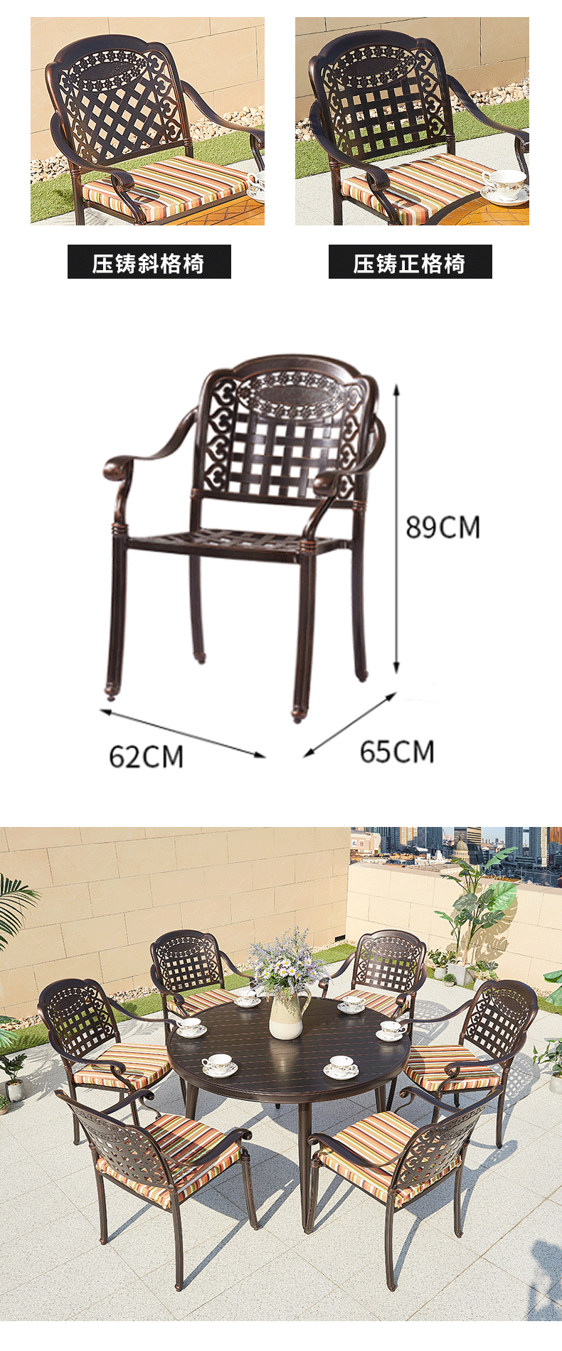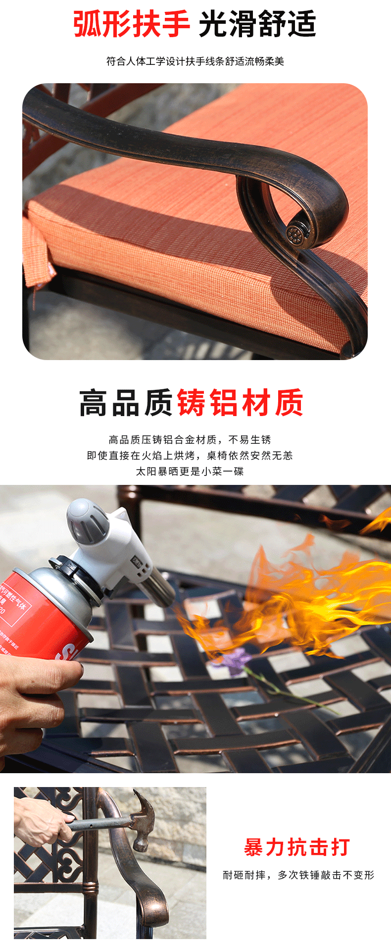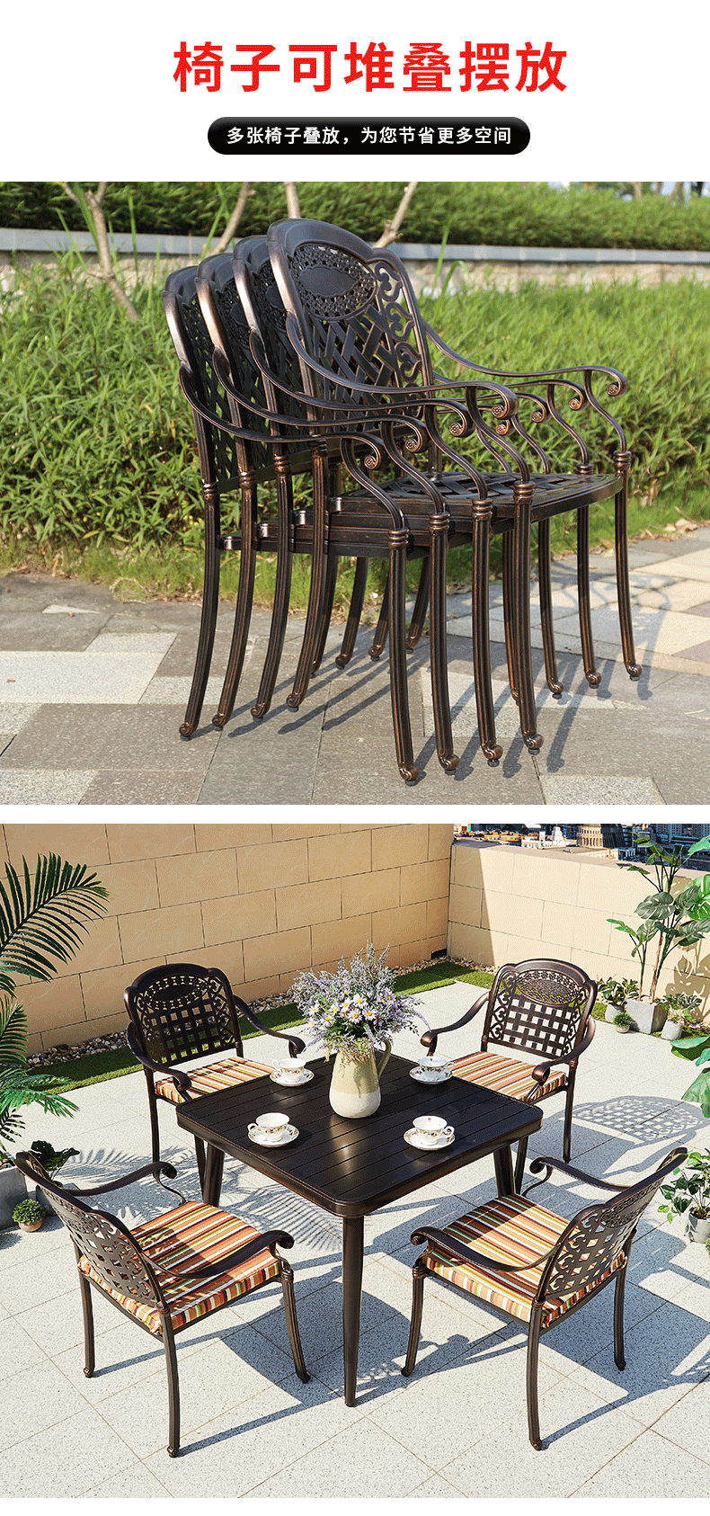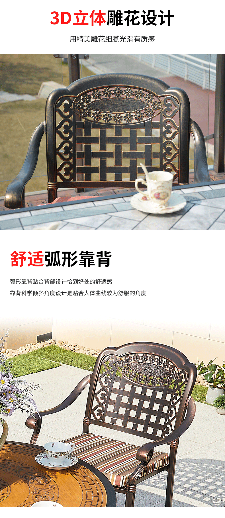 Sản phẩm nổi bật với các đặc điểm: Sân vườn ngoài trời bàn ghế hợp kim nhôm giải trí biệt thự Châu Âu ban công nhôm đúc bàn ghế ngoài trời